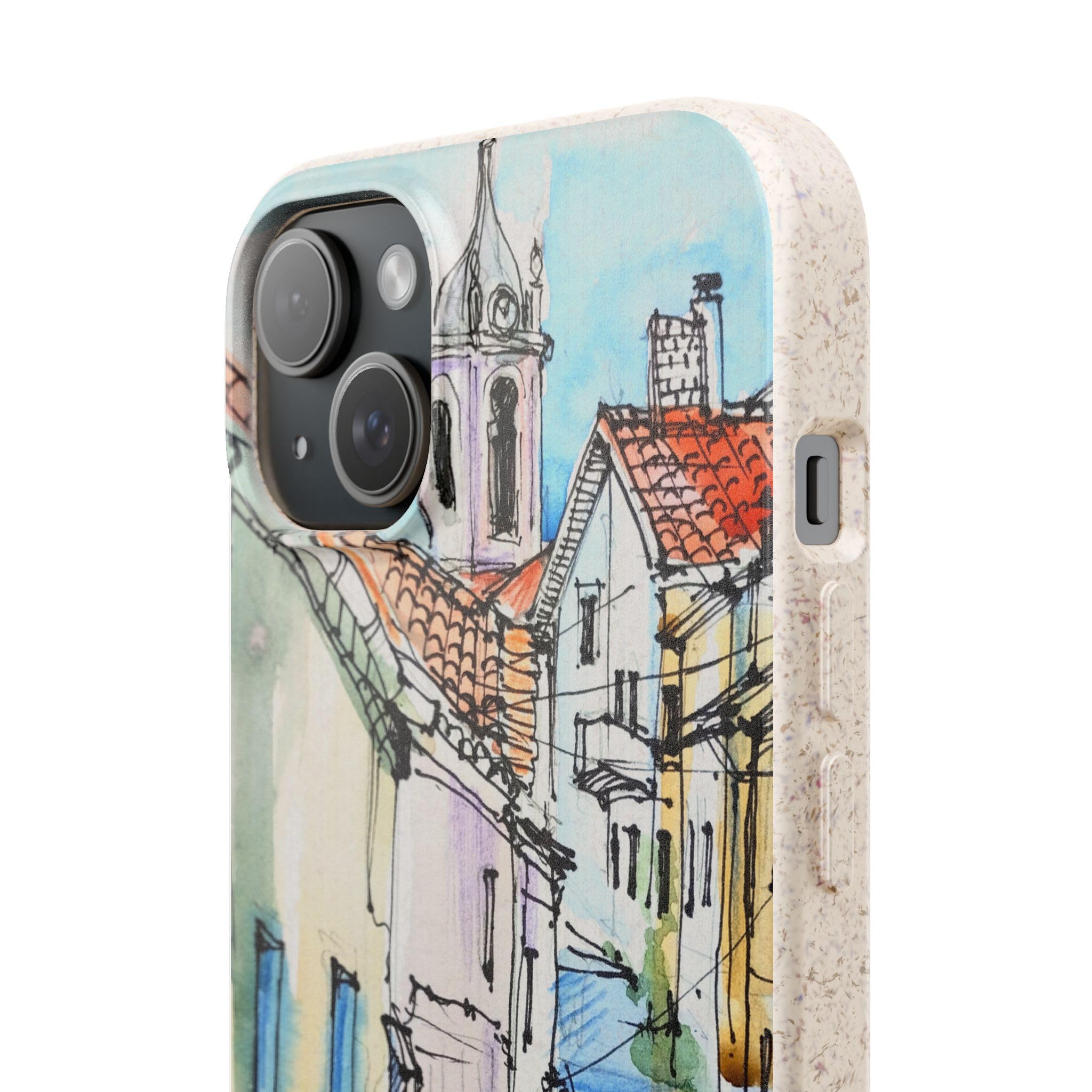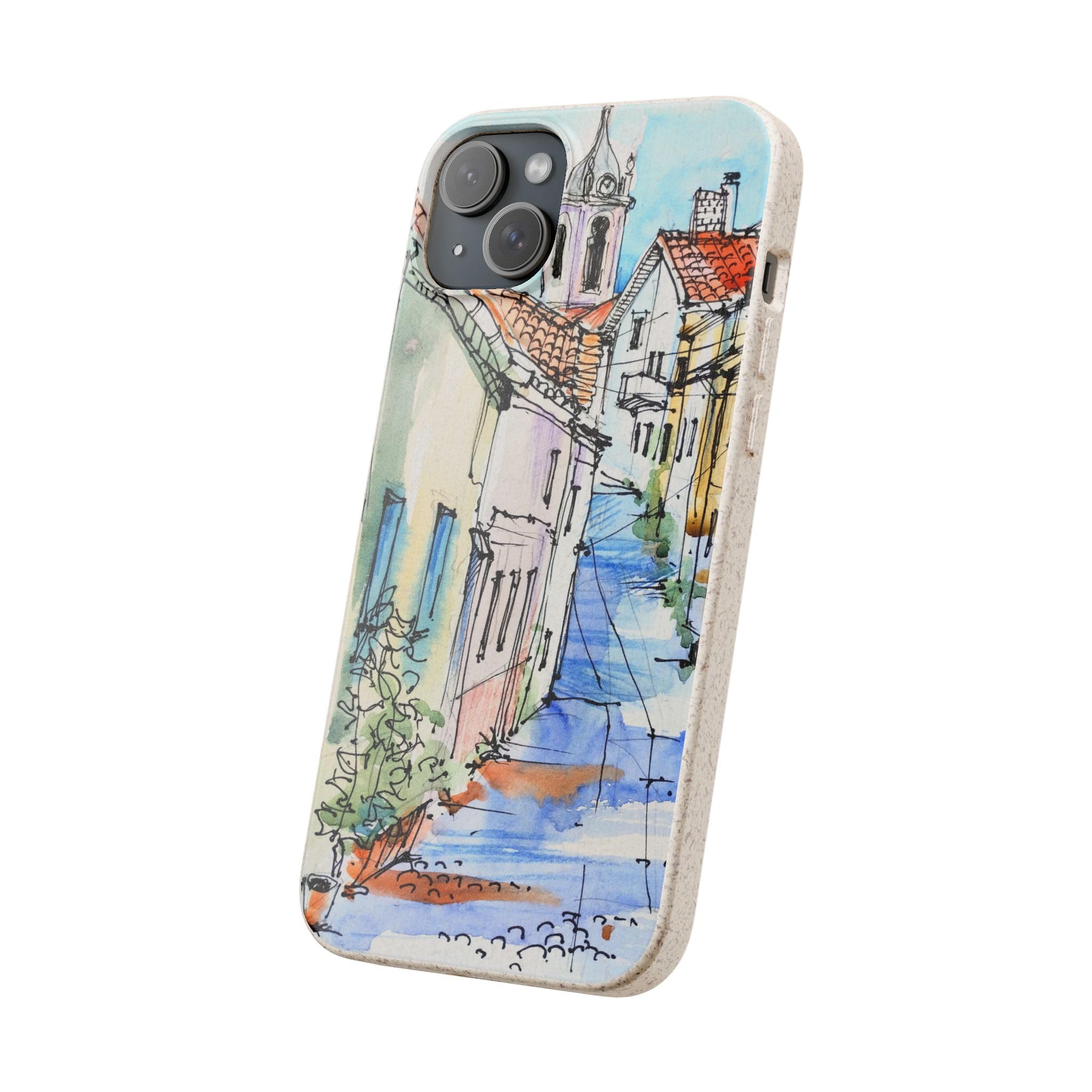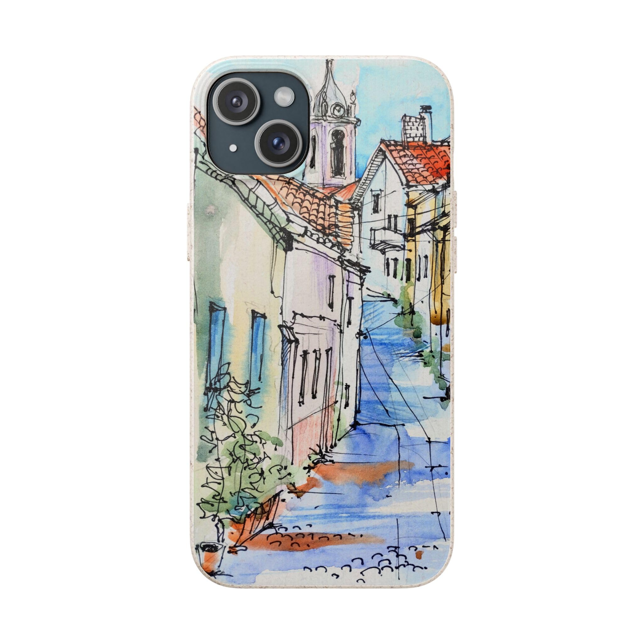 Protect your phone in style while protecting the planet! Embrace nature with our European Town Art Biodegradable Phone Case, featuring a charming illustration of a colorful European street scene. The design showcases quaint cobblestone roads, vibrant historic homes, and a picturesque chapel, all beautifully rendered in watercolor and fine pen detail. Perfect for lovers of travel-inspired art, European architecture, and the warm, nostalgic feel of hand-painted urban landscapes. Crafted from eco-friendly, compostable materials, this sustainable phone case not only protects your device but also supports a greener planet — naturally biodegrading within 160 days of disposal. It’s lightweight, durable, and fully supports wireless charging for effortless everyday use. Available for multiple phone models. Order yours today and carry the beauty of nature wherever you go! Details: .: Materials: PLA and PBAT polymers, bamboo fibre .: Matte finish .: Wireless charging compatible .: Precise cut outs for connectivity .: Might have a natural scent