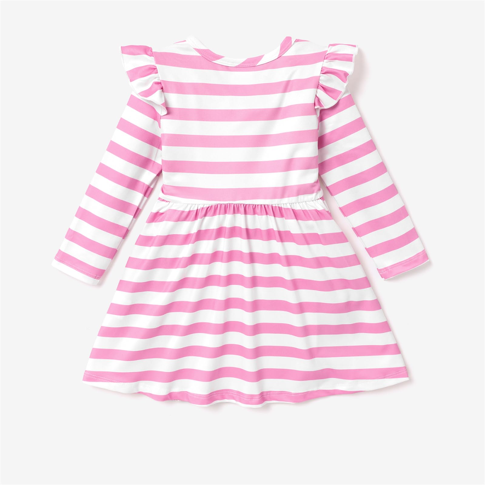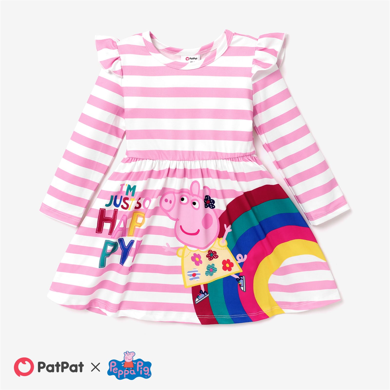Charming Detail: The girl's fall outfits feature a cute and lovable Peppa Pig design. The flutter sleeve, pink and white stripes add a stylish element to the design, while the vibrant rainbow pattern adds a fun and playful touch to the overall design.