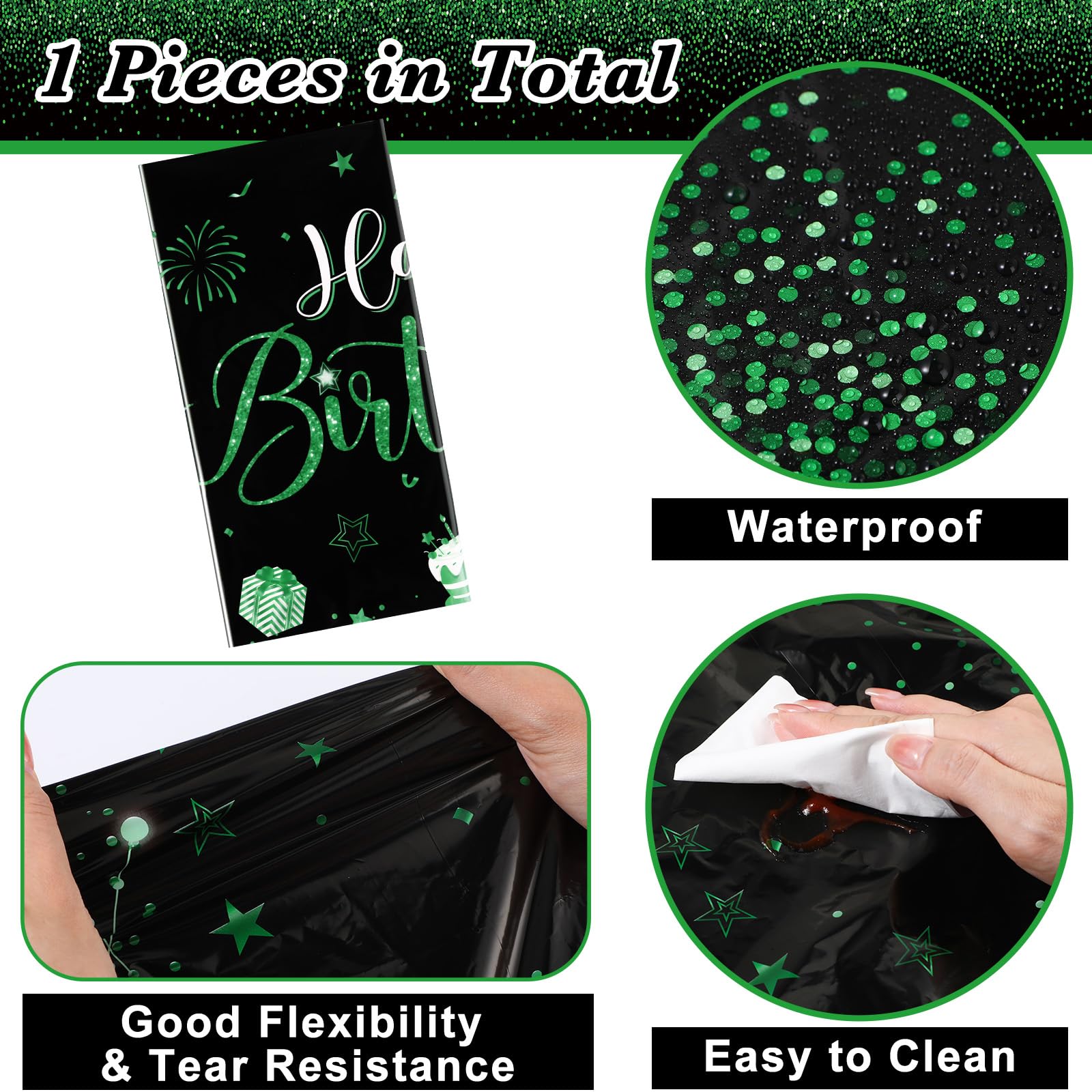 What You Will Receive: the package contains 1 pieces of happy birthday tablecloths in classic black and green colors, enough to meet your using and replacing needs for holding a birthday party