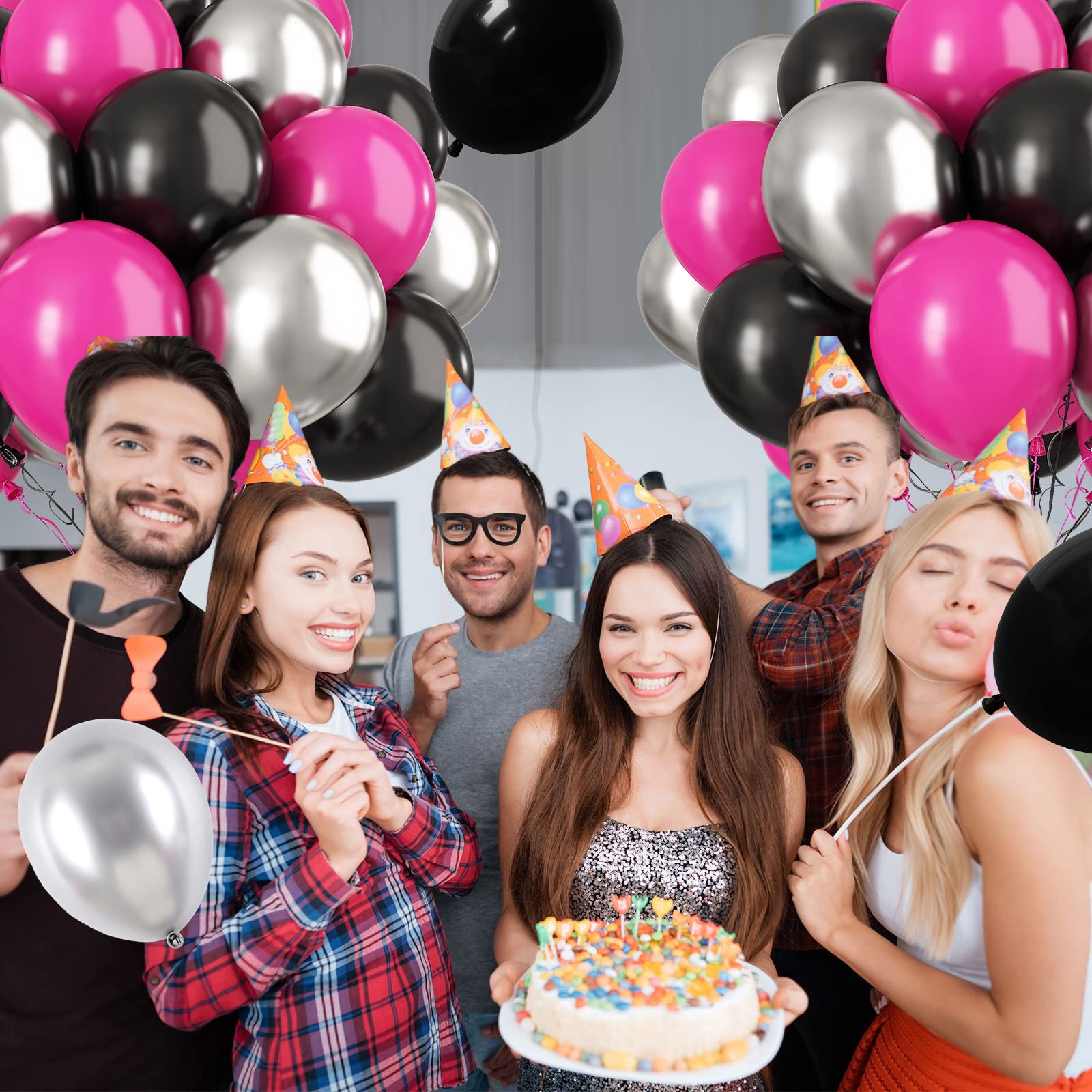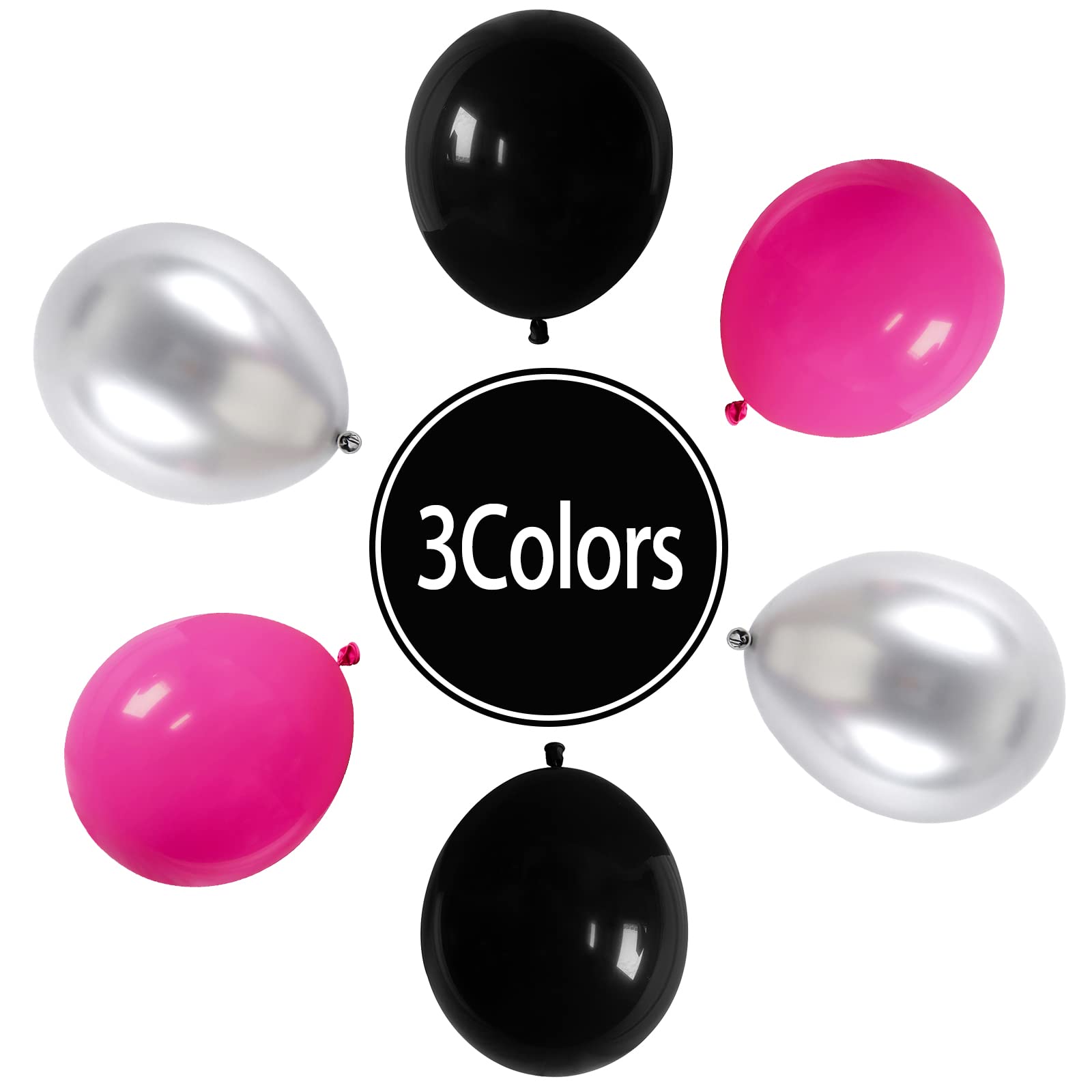 Good Quality Balloons: The hot pink black silver balloon set is made of good quality latex material, which will stay inflated for a long time, not easy to burst, safe to be used as balloons decorations for party.
