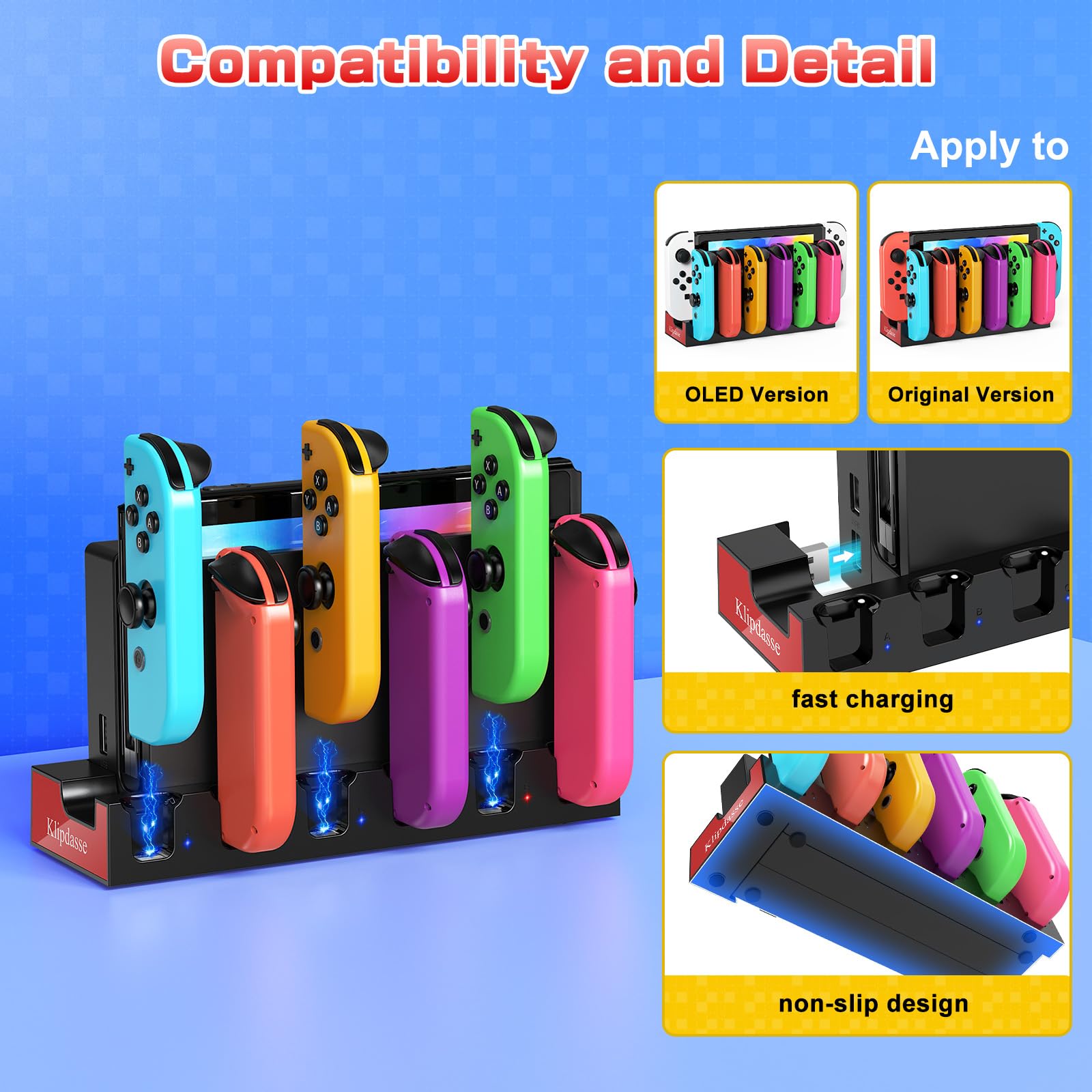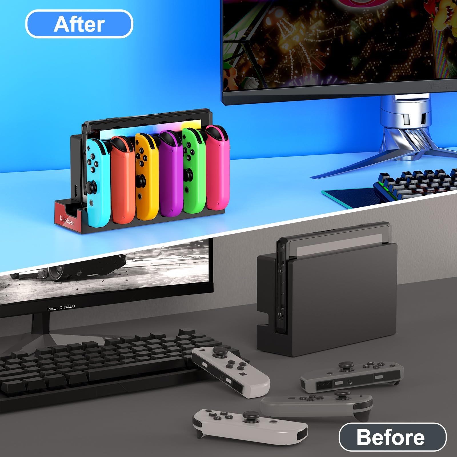 Excellent Customer Support: If you encounter any issues with Klipdasse Joycon charger dock, Klipdasse dedicated after-sales service support team is ready to assist you. Note: Switch joycons and console are not included in this package