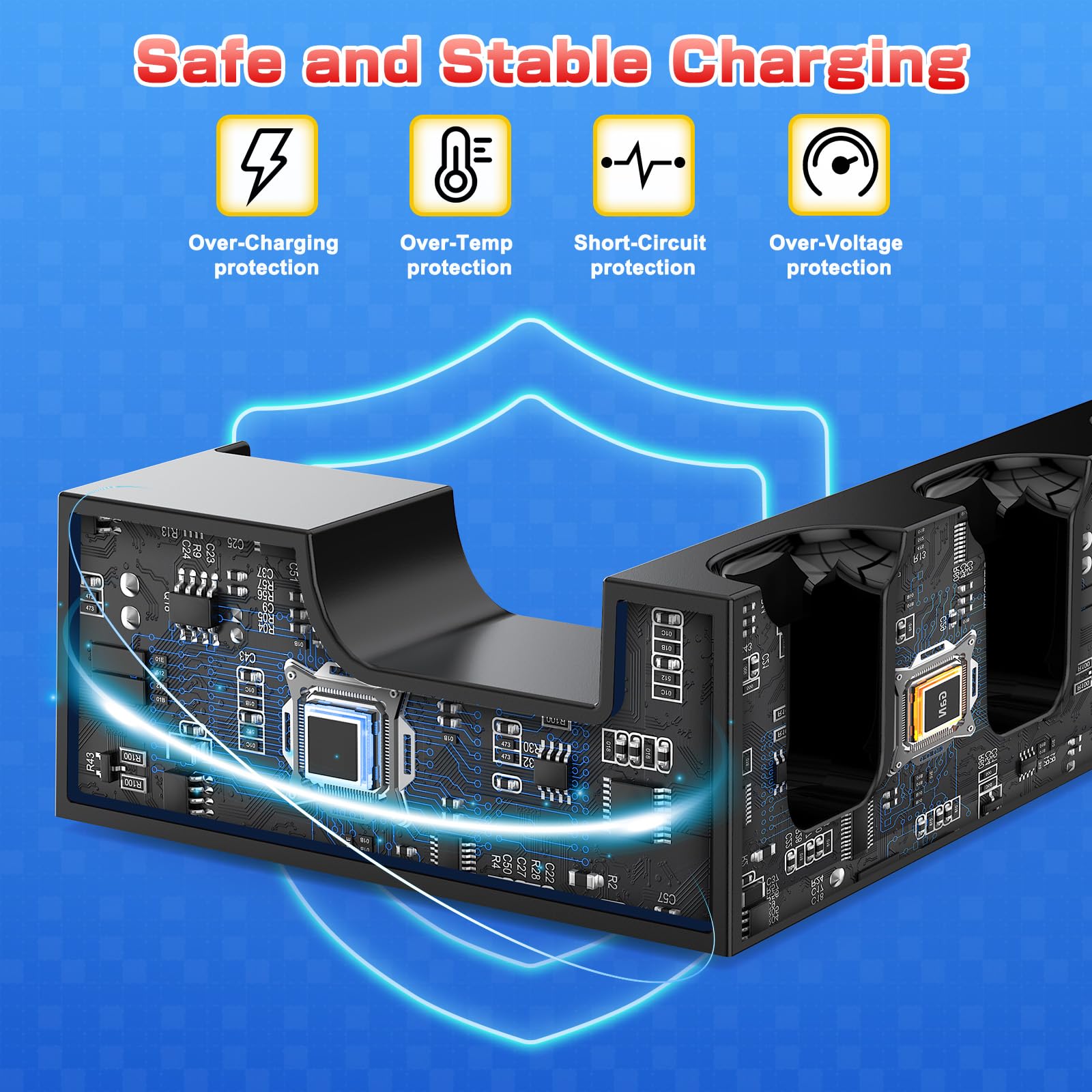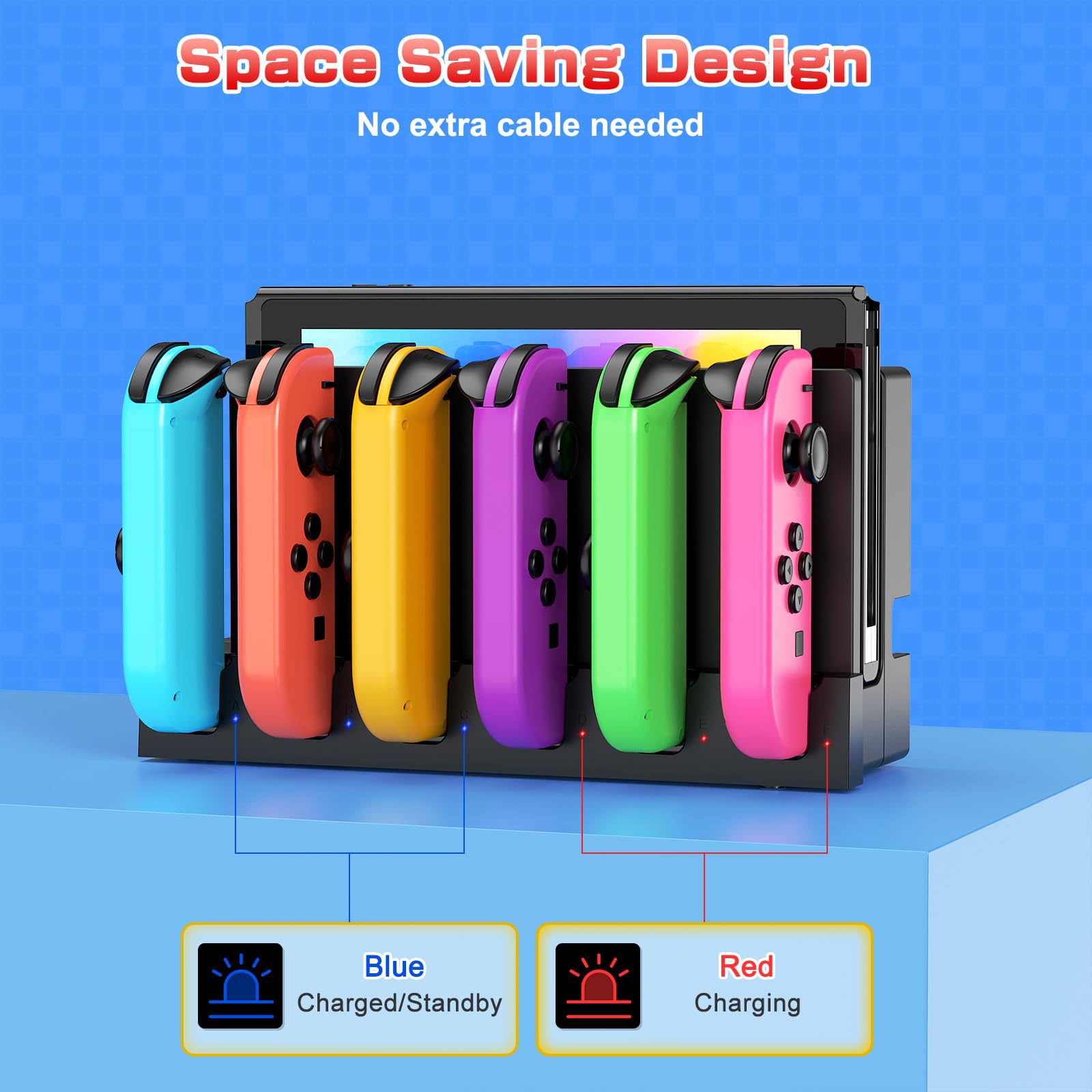 Built-in Intelligent Protection: This Nintendo Switch charging station is equipped with intelligent protection chips to prevent over-currents, over-heating, over-voltage, and short-circuits, providing a safe and reliable charging solution for your gaming console
