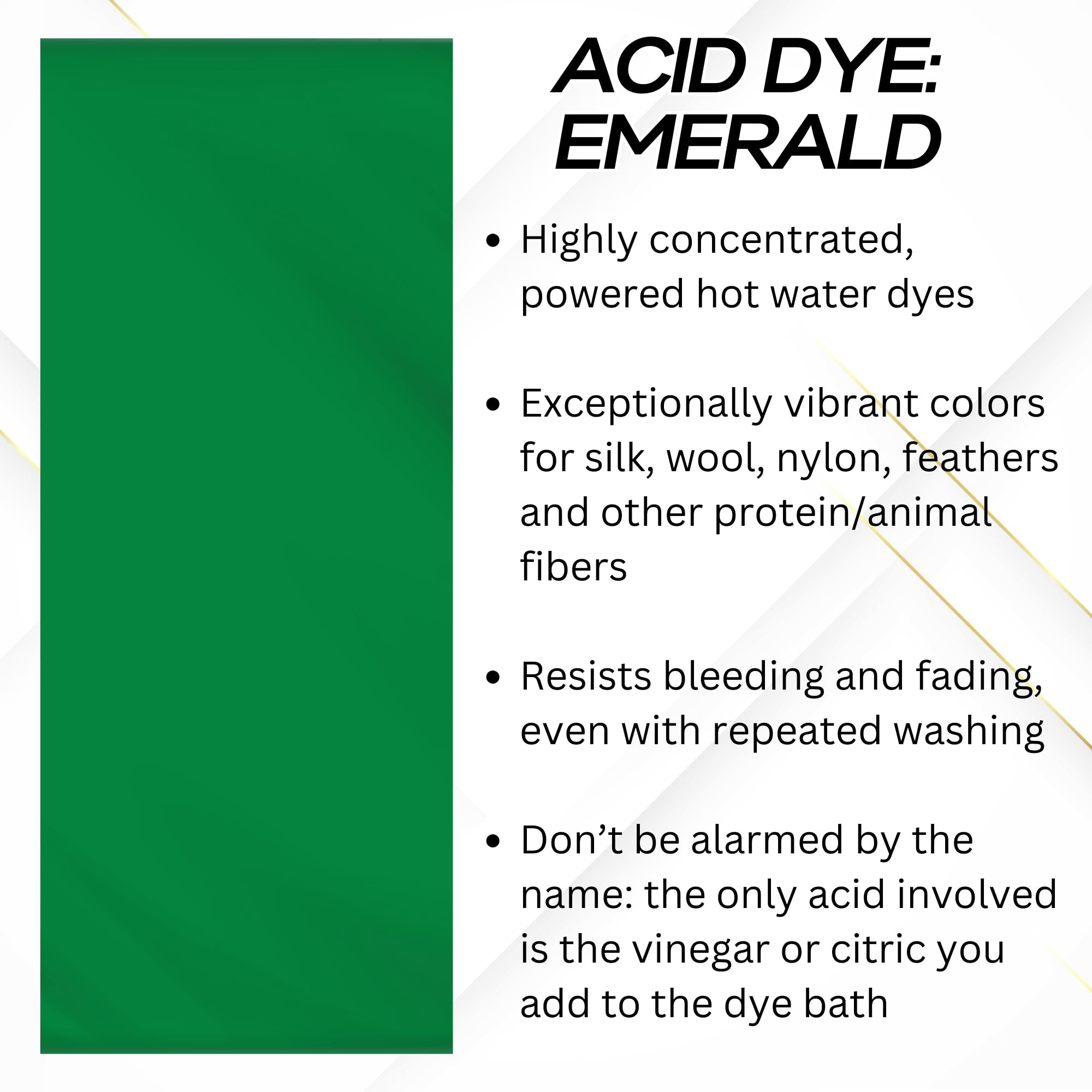 Easy to Use - Heat the water to 180 degrees F (80 degrees C) then add the dye. Add wet fabric to the dye mixture, then add chosen acid (vinegar or citric acid). Acid Dyes are stable in solution, allowing you to save the dye bath or stock solution for future use