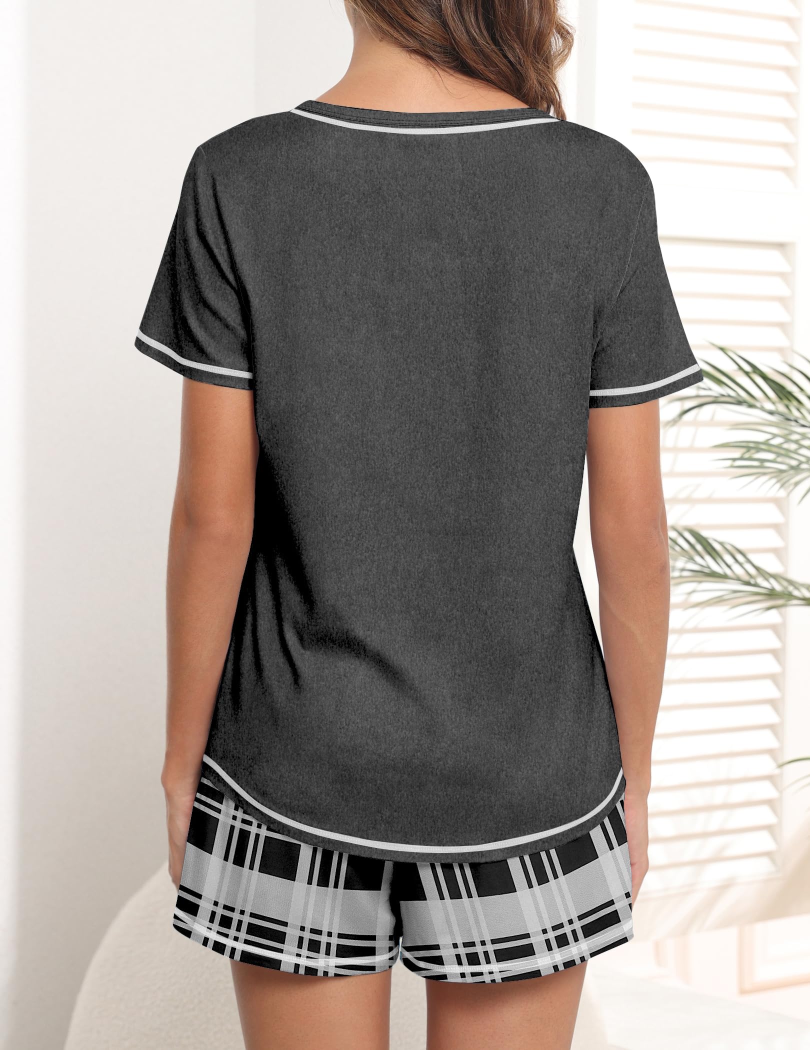 Design: The pajama top features classic chest pocket and V neck, with exquisite hemming workmanship; the pajama shorts features adjustable drawstring and pockets. Loose fit lounge sets, cute and comfy pajamas for women and teens girls