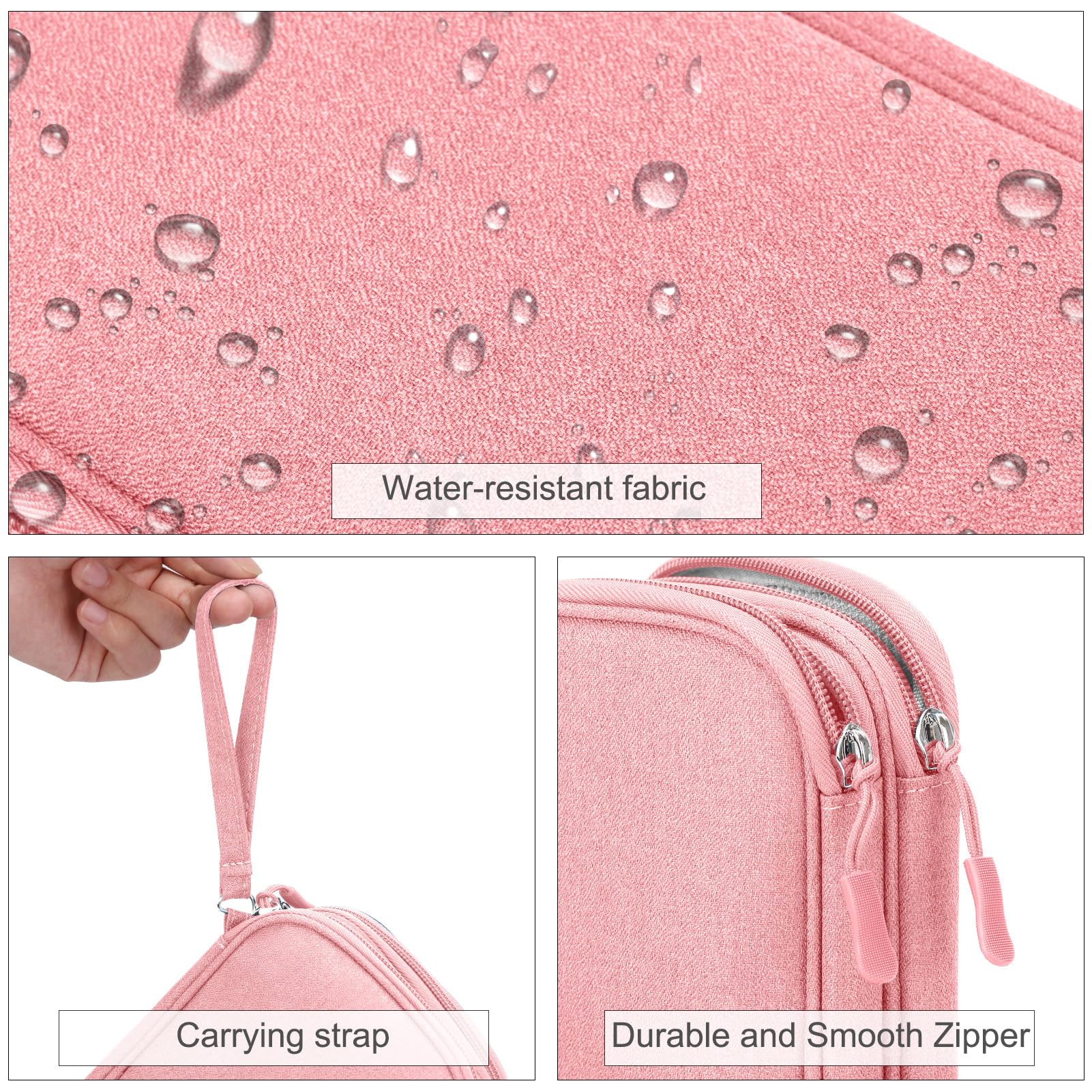 Double Layers Design: The electronics storage bag has 2 layers interior compartment with enough space to take in your cords, cables, USB drive, cellphone, charger, mouse, flash drive, and other accessories.