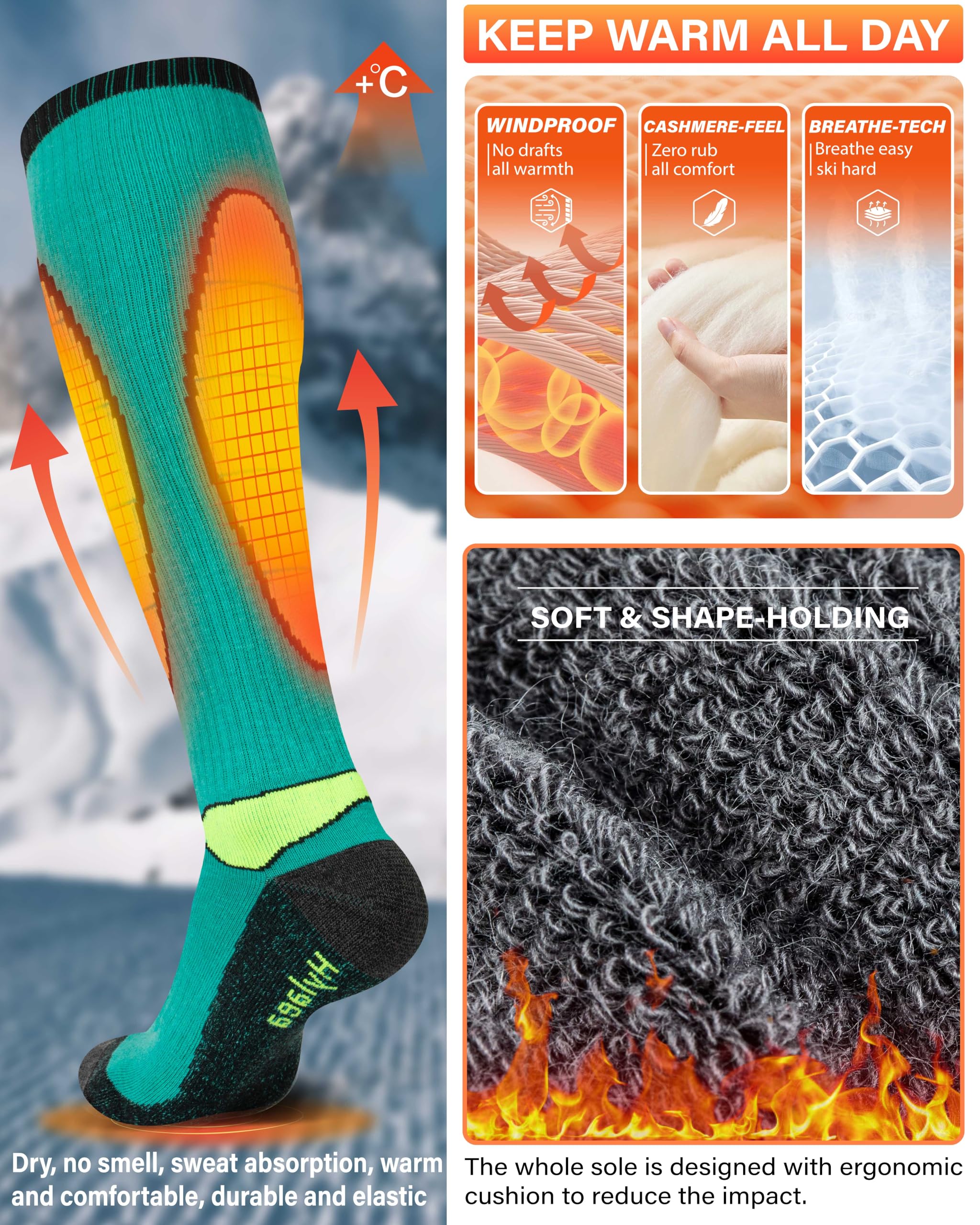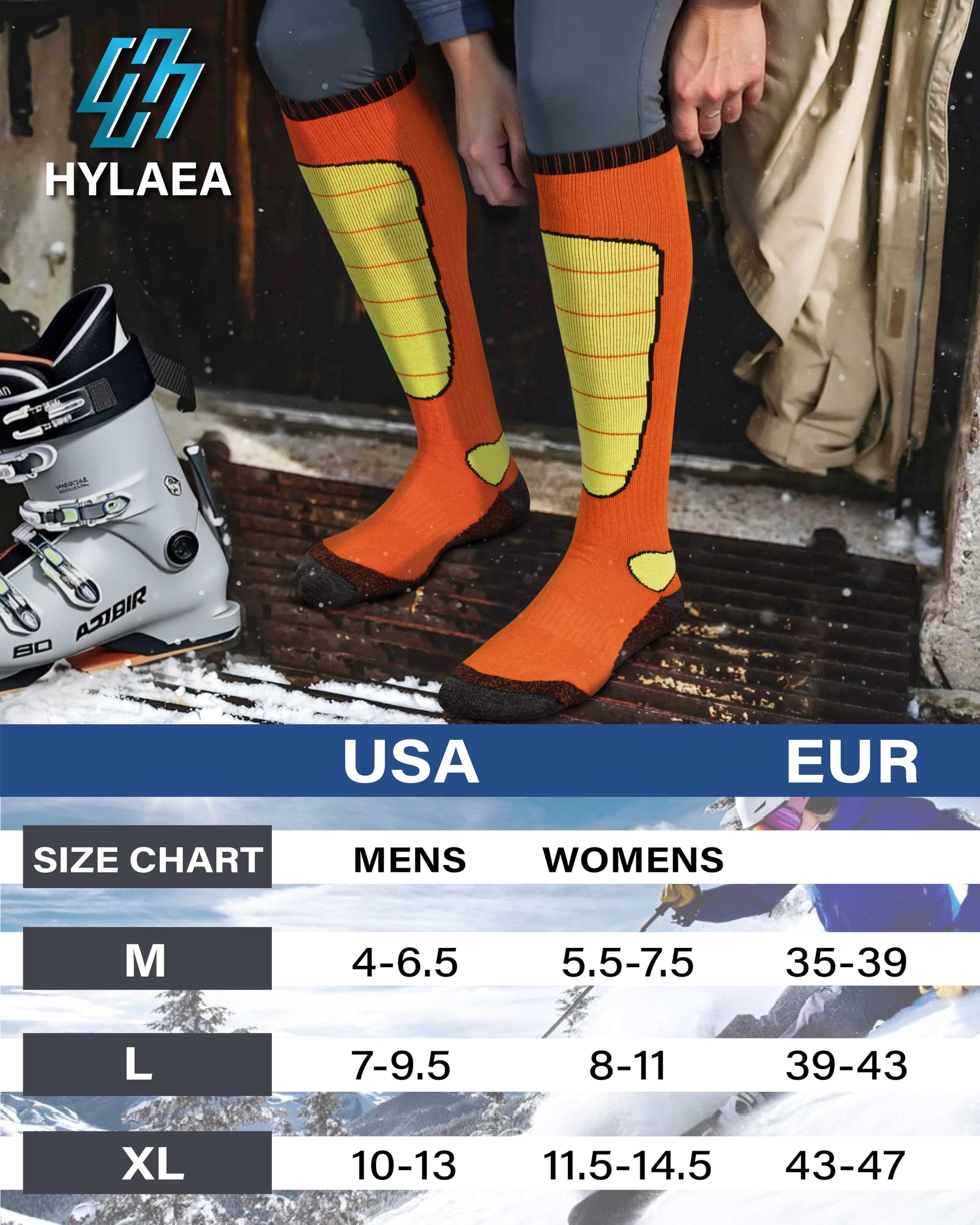 SOFT & COMFORTABLE: These thick-knee high socks feature thick terry loop in forefoot, heel, and toe specifically engineered for minimized friction and shock absorption. The snowboard socks added just the right amount of targeted padding on the front shin area where skiers and riders often need a little more cushion. This ski accessories are great options for skiers and riders who know a great day on the mountain starts with a great pair of socks