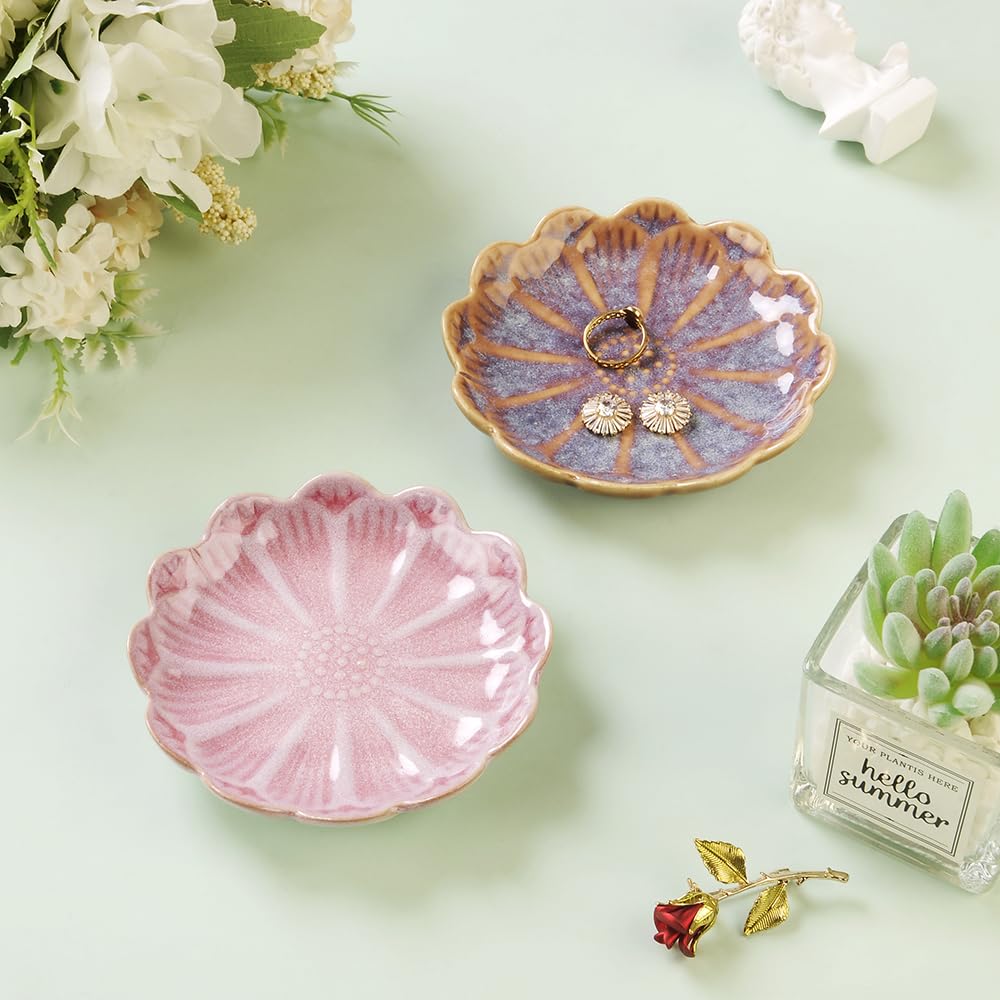 🌸【Exquisite Size】: 4.3″×4.3″×0.8″, Well packed with thick bubble bag. It has a thick bottom and won't scratch your furniture. It is perfect to have in your kitchen, bathroom, on your night stand, dressing table, or anywhere else you take your jewelry off.