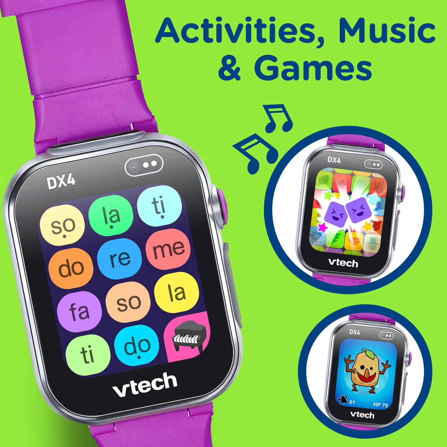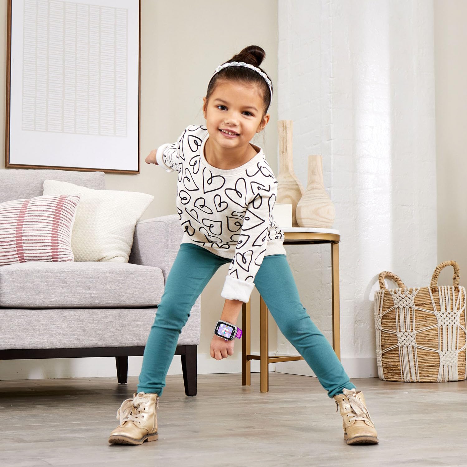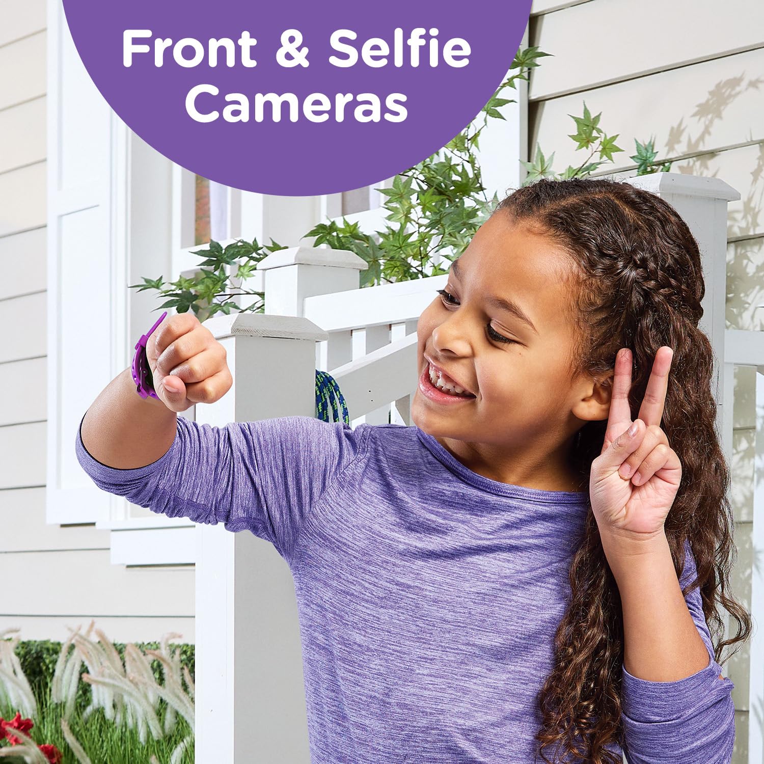 Strike a pose! This smartwatch features two cameras, a high-resolution screen, a splash-proof metal body and a fashionable watchband that makes this full-function smartwatch the coolest tech around. Get creative with the dual cameras to personalize your clock face, photos and videos with the effects and filters. Find AR monsters in the real world, compose music using instruments and sound effects, and play exciting movement games to see your step count soar. Practice telling time with over 50 clock faces or shake the watch to hear the time out loud. Download additional games and more from the Learning Lodge. Set to English, Spanish or French. Intended for ages 4+ years. Includes built-in, rechargeable lithium-ion battery and micro-USB cable. Do not charge using a third-party adapter.