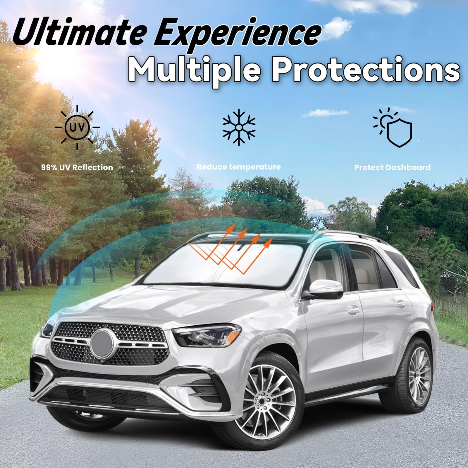 【GLE 350 450 Sunshade】: Car sun shade for Benz GLE-Class 2020 2021 2022 2023 2024 2025 is custom-fit for a precise installation; It fits perfectly to your window without the need for suction cups; It won't sag or collapse, making it ideal for outdoor camping adventures