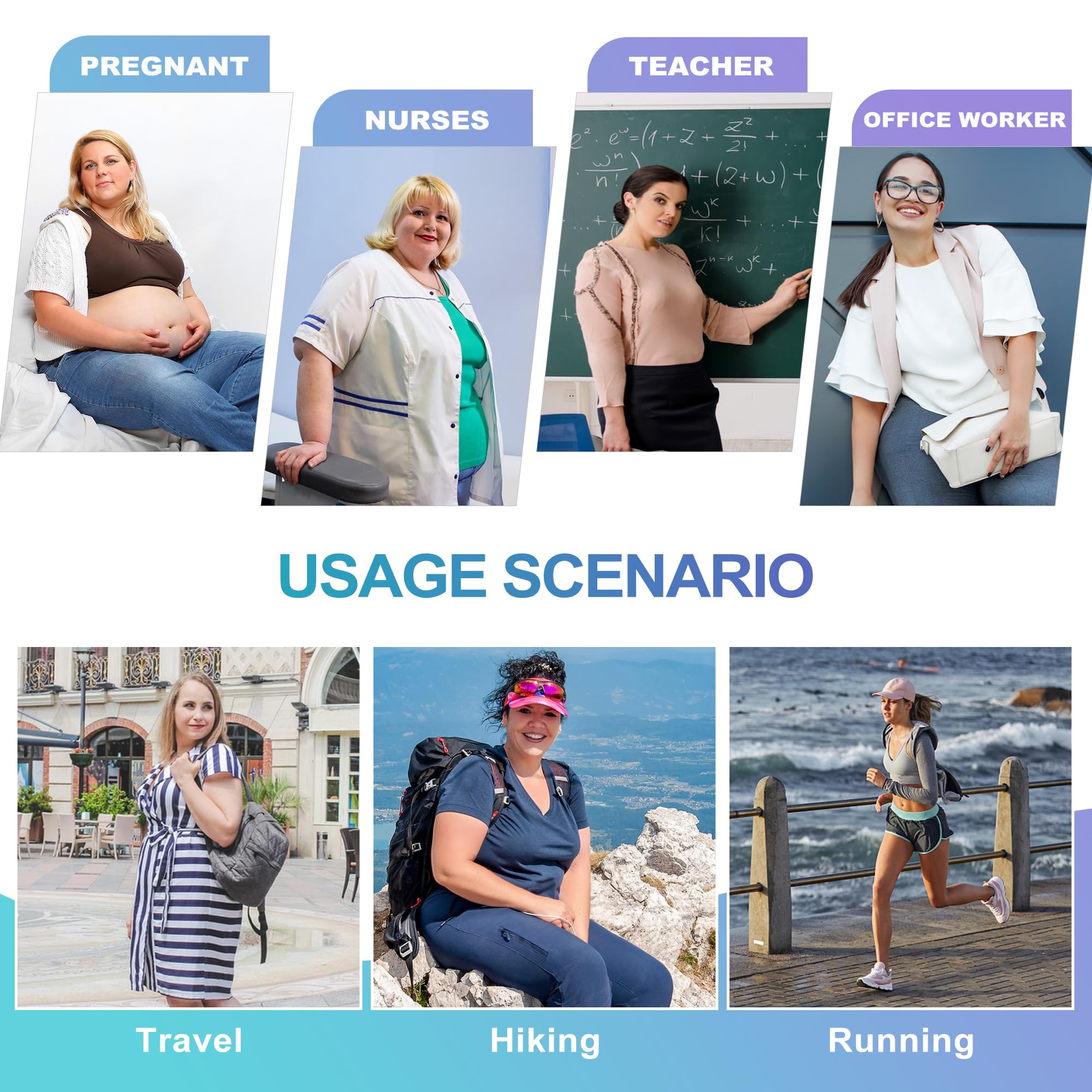 Compression Socks for Women: Wide calf compression socks women are good for many different people including nurses, doctors, pregnant women, teachers, office workers, cashiers, and grocery clerks. They are also good for anyone who sits or stands for long periods of time, like during a long trip or flight. You can also wear them for activities like hiking, walking, sports, or as a gift.