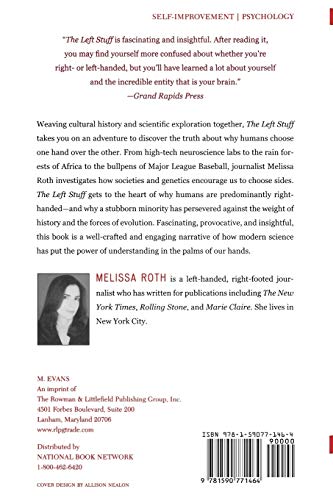 Weaving cultural history and scientific exploration together, The Left Stuff takes you on an adventure to discover the truth about why humans choose one hand over the other. From high-tech neuroscience labs to the rain forests of Africa to the bullpens of Major League Baseball, journalist Melissa Roth investigates how societies and genetics encourage us to choose sides. The Left Stuff gets to the heart of why humans are predominantly right-handed-and why a stubborn minority has persevered against the weight of history and the forces of evolution. Fascinating, provocative, and insightful, this book is a well-crafted and engaging narrative of how modern science has put the power of understanding in the palms of our hands.