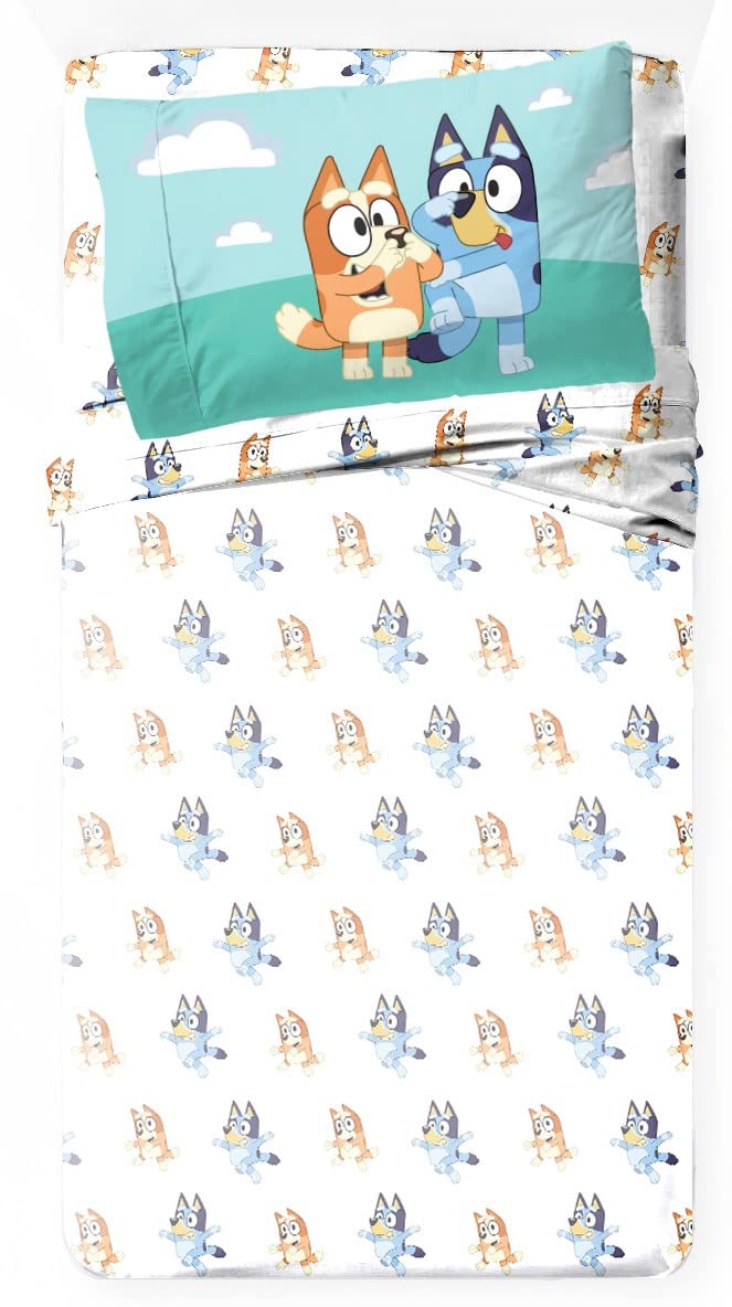 OFFICIALLY LICENSED: Bring the playful world of Bluey to bedtime! This vibrant sheet set features Bluey, Bingo, and colorful designs from the hit preschool show. A must-have for young Bluey fans.