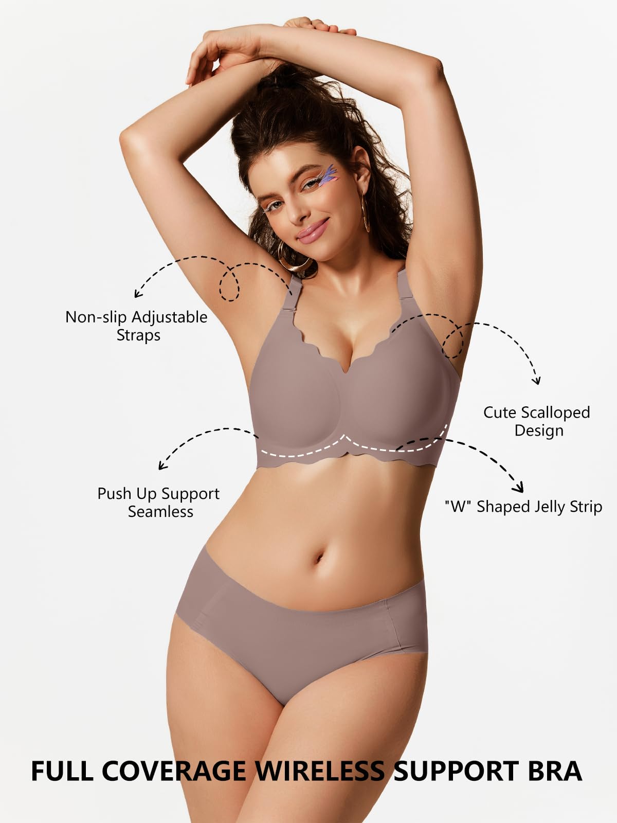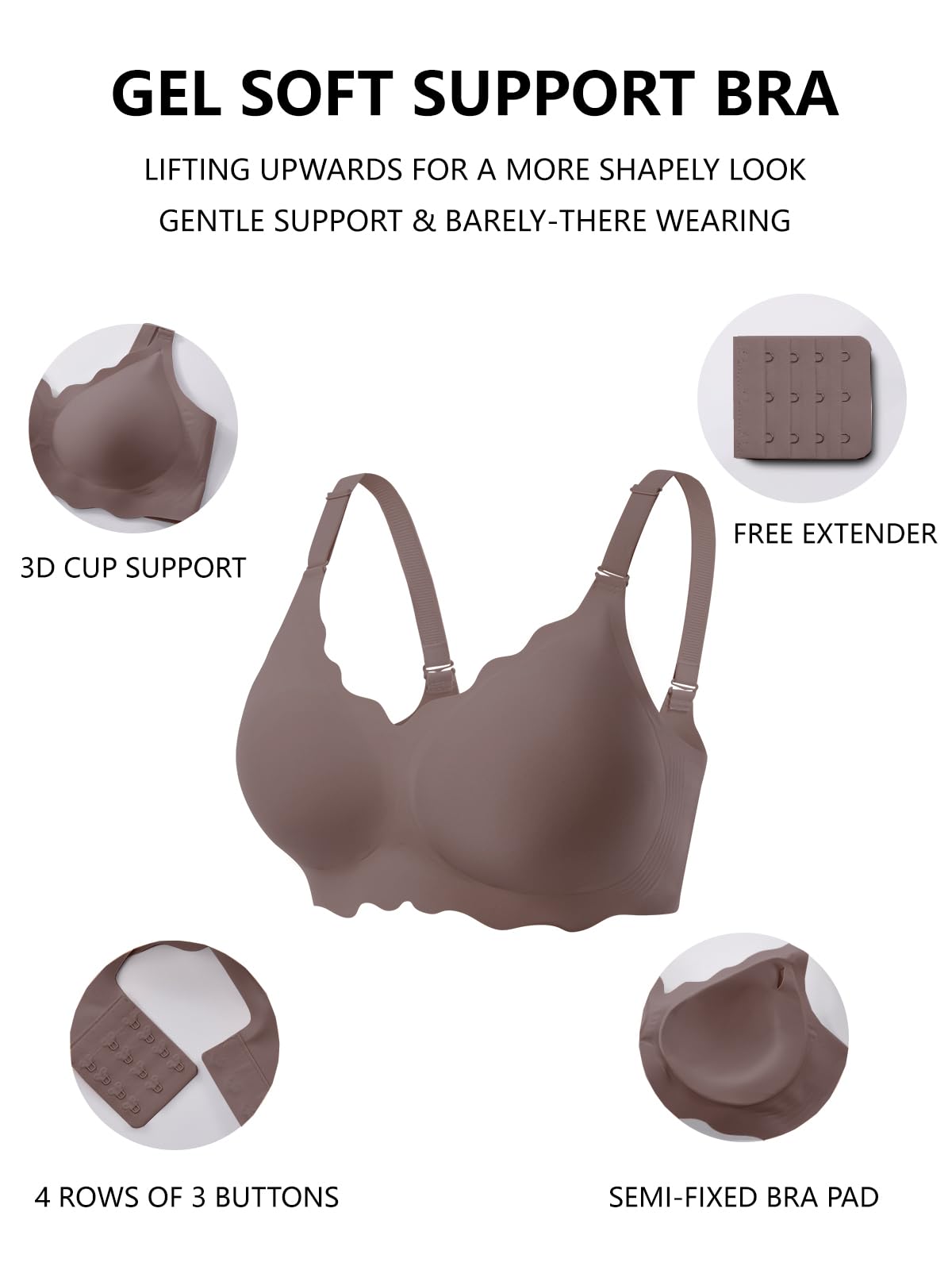 【Soft Supportive bras with Jelly Strip】Experience super support with our wireless push-up bra, featuring an innovative "W" shaped jelly strip that wraps around each breast for 360°natural-looking lift and shaping. This unique 3D support technology enhances your curves without underwire, offering a perky, rounded silhouette with anti-sagging confidence.