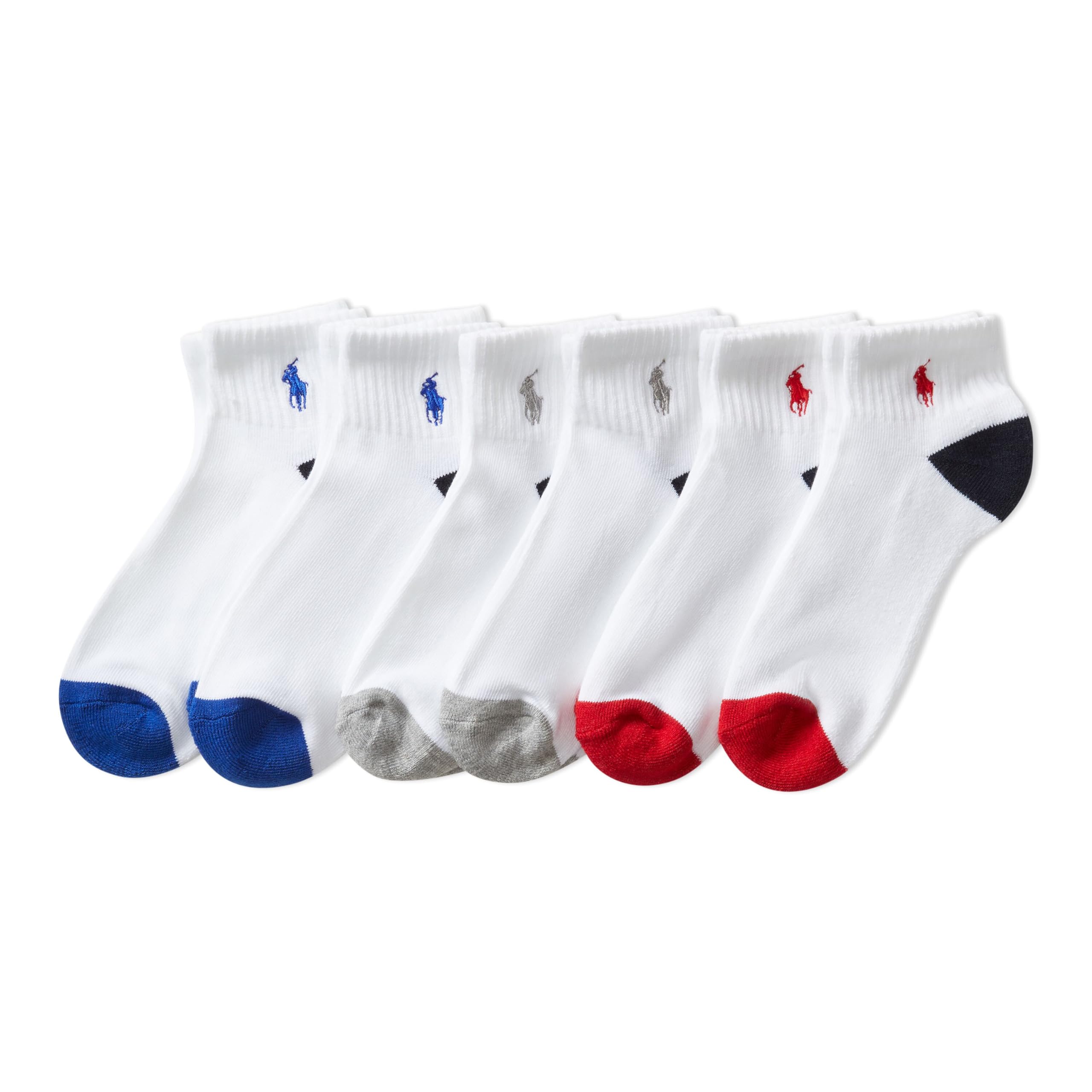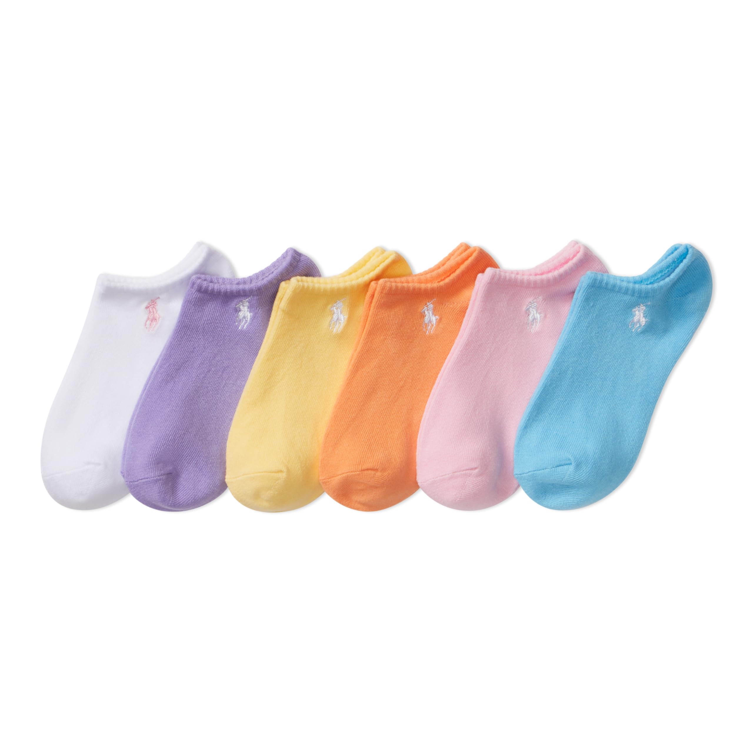 Description Discover the timeless style and comfortable fit in every pair of socks from Polo Ralph Lauren. The low-cut socks in this six-pack for kids feature a soft flat knit and cushioned soles for comfort. Pops of color and Ralph Lauren’s embroidered Pony add a signature finish to this six-pack of athletic socks for kids. Growing feet deserve the comfort of premium socks. Kids’ socks are a quintessential gift for birthdays, Easter, back to school, Christmas, or just because. Explore the fun designs and superior quality of Polo Ralph Lauren’s ultrasoft socks for your son, daughter, or grandchildren.