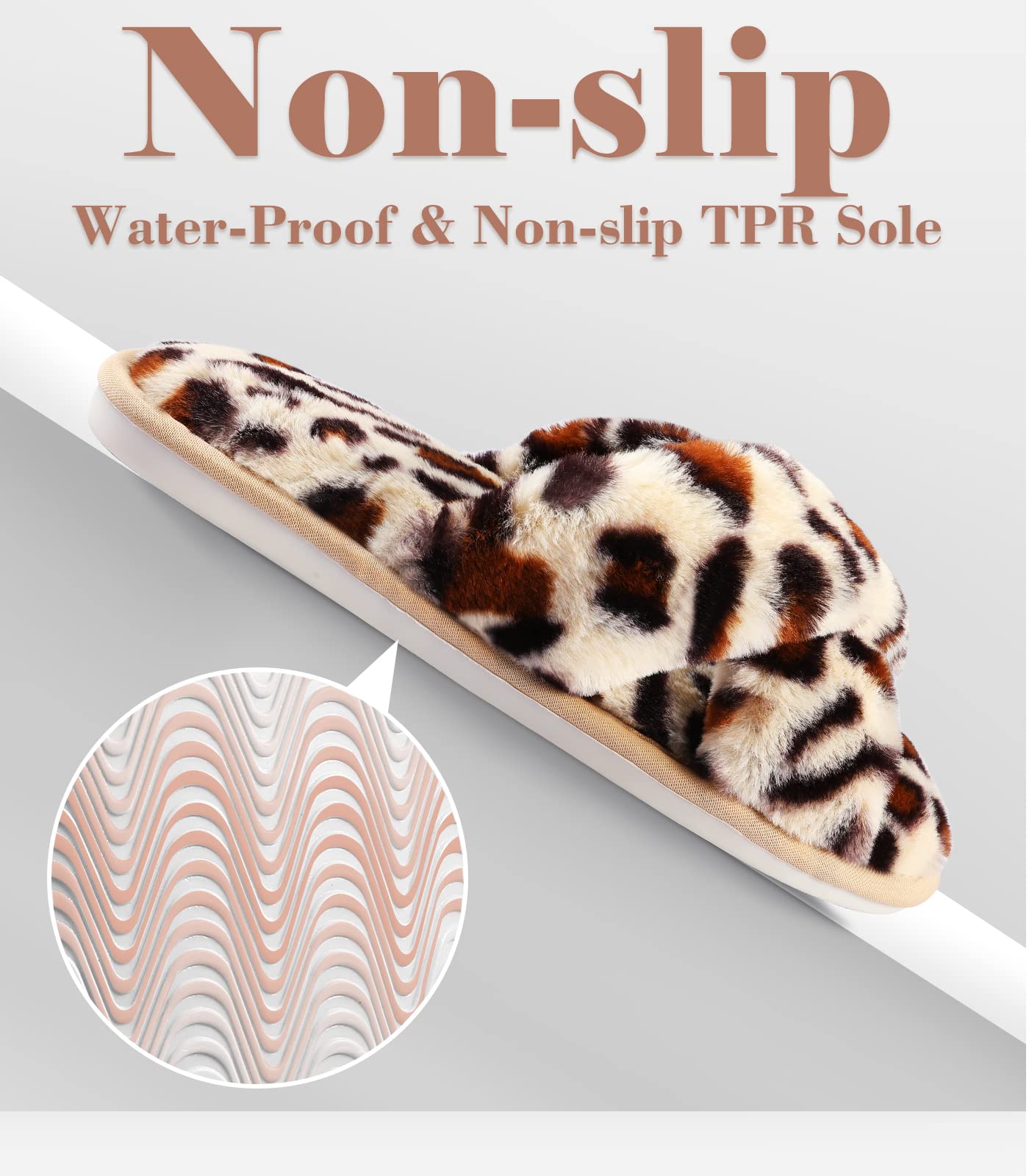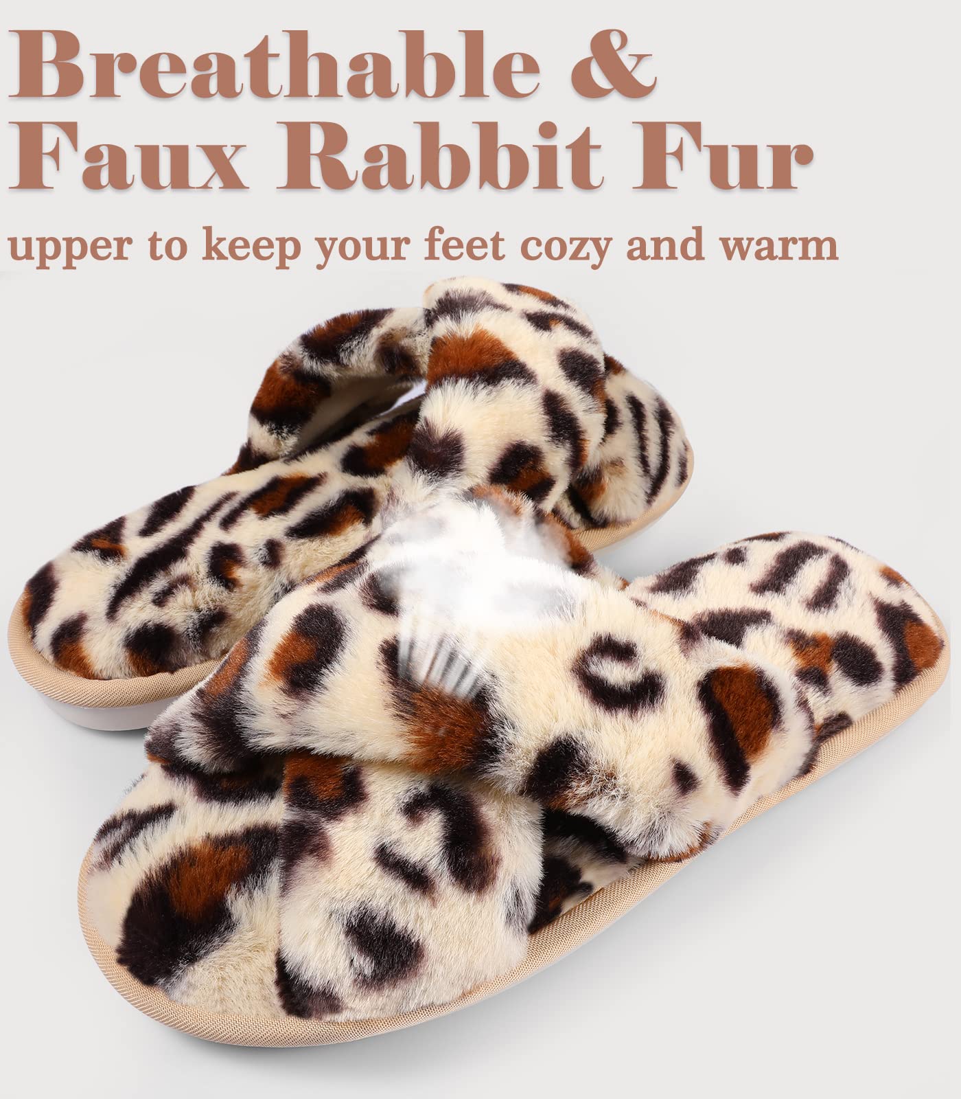 Chic Must-Have Slippers for Women: Ankis fuzzy slippers feature a trendy cross-band design that looks cute and stylish. The open-toe style makes them easy to slip on anytime. Soft plush faux fur keeps your feet cozy while staying breathable for all-day comfort at home