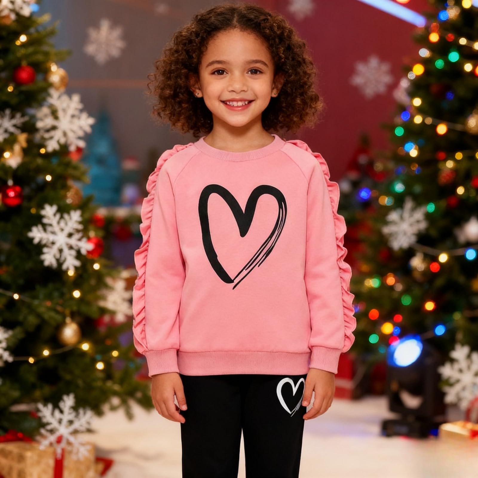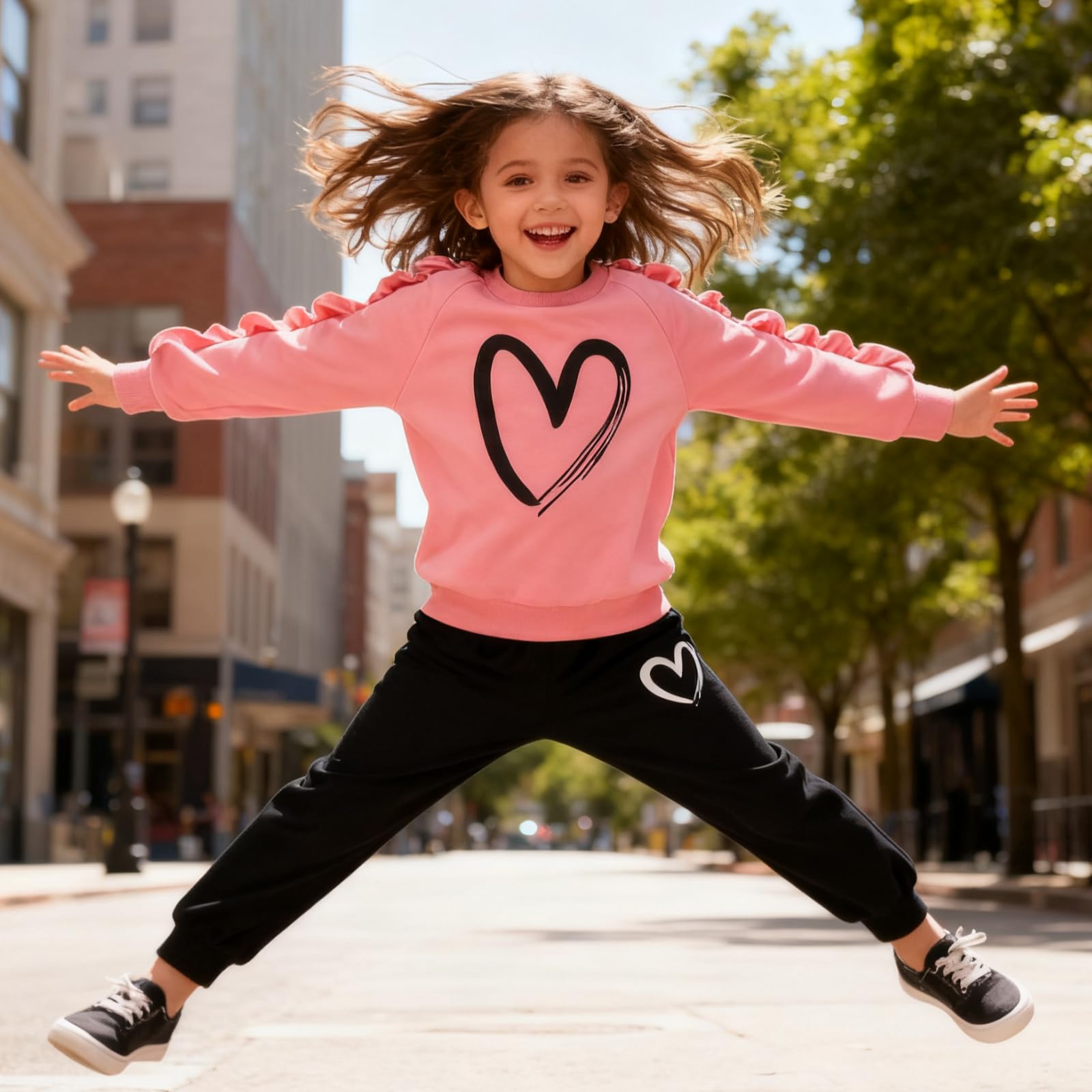 ❤【Stylish Design】Toddler clothes for girls is designed with long sleeve heart pattern top & eleastic waist solid pants, which make your young girl more adorable and more fashionable to get more compliments.