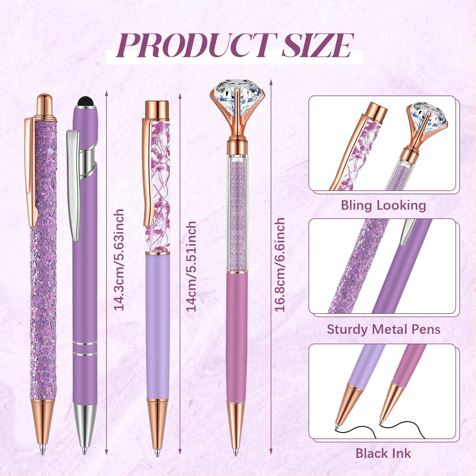 Broadly Applicable: the purple pencil holder can be utilized as a delicate decoration for your desk, office and home; It can be applied as a pen holder as well as a makeup brush holder to help you put away some small things; Bling purple pens are suitable for journaling, taking notes, signing, weddings, bridal shower and various parties, or writing down daily reminders and schedules