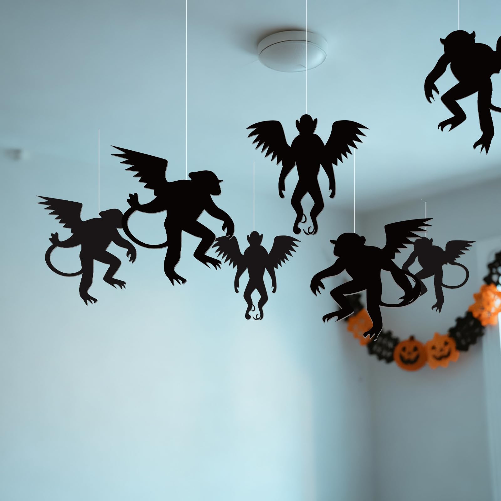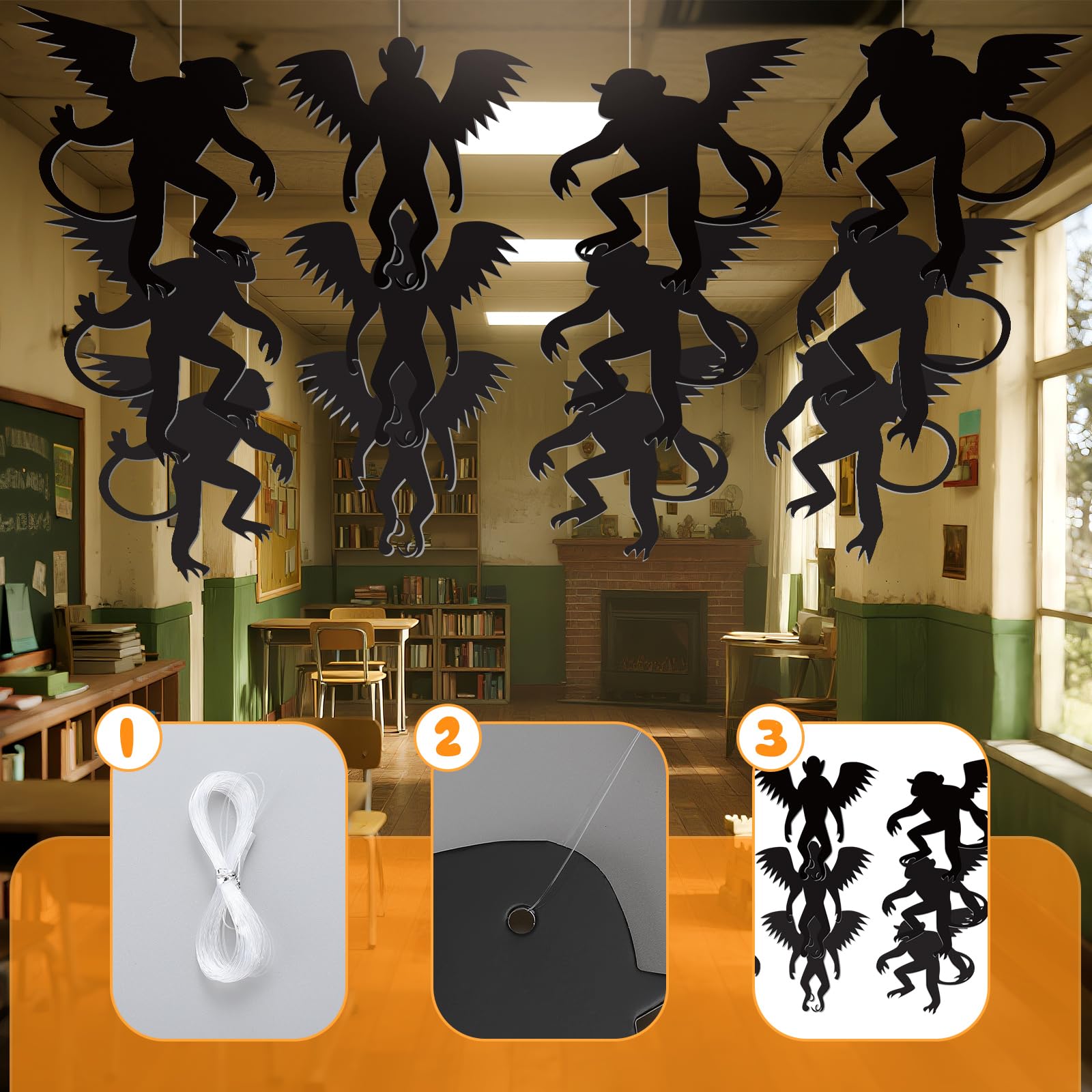 Innovative Black Design: our wizard hanging monkey suspension decoration is mainly black with a red tone; The size of a single monkey is 30 x 20 cm, 300g, and the spacing between monkeys is adjustable, making it suitable for different widths; Very suitable for hanging in living rooms, branches, ceilings, backgrounds, front doors, walls, windows, gardens, offices, etc