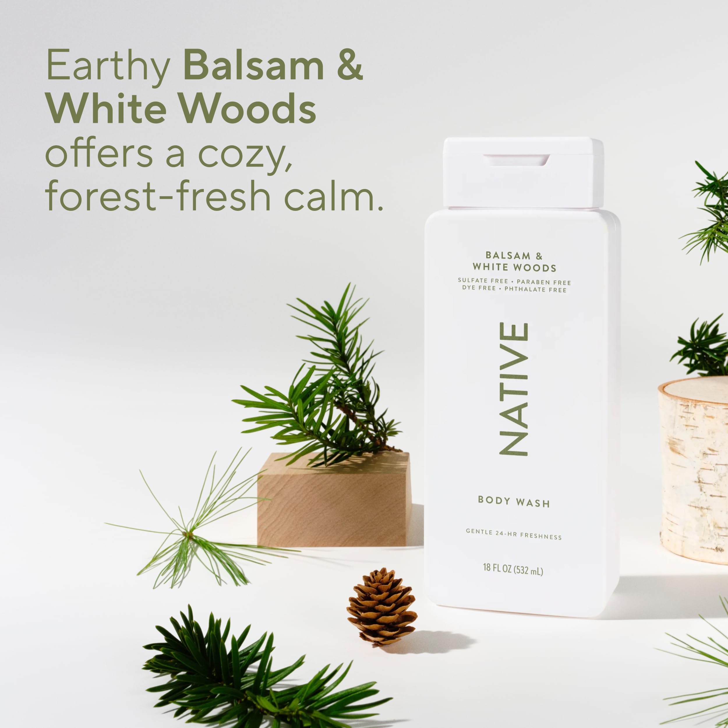 EARTHY BALSAM & WHITE WOODS SCENT: Find your calm with this forest-fresh scent. A grounding blend of balsam, citrus, and herbal musk offers a cozy and clean fragrance experience that leaves your skin feeling refreshed and centered.
