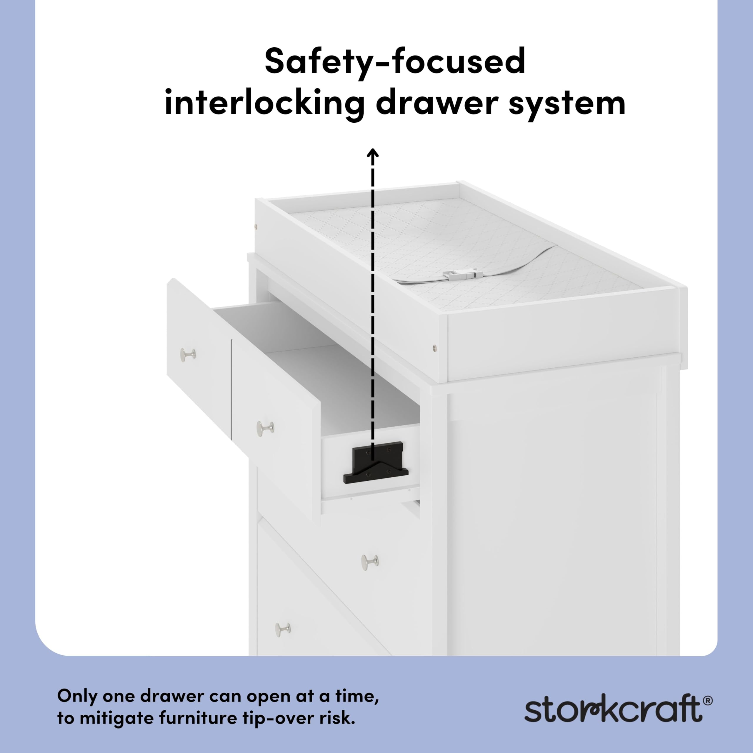 ENGINEERED FOR SAFER STORAGE — INTERLOCKING DRAWER SYSTEM: Includes a safety-focused interlocking drawer system—meaning, only one drawer can open at a time—and furniture tip-over restraint kit, intended to reduce furniture tip-over risk when used together