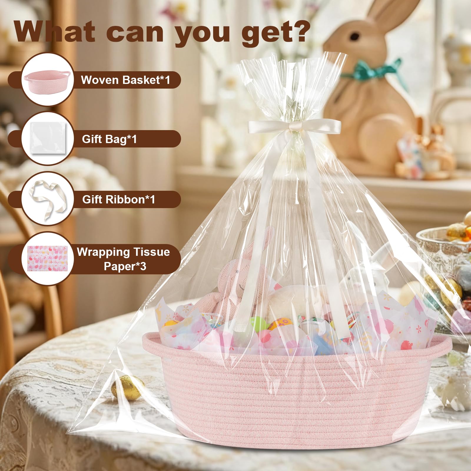 Ideal gift choice: This empty gift basket is cute and stylish, each small basket comes with a gift bag and ribbon, as well as 3 sheets of gift wrap tissue paper, which can better decorate, protect the stored items and can be used as a gift basket at any time
