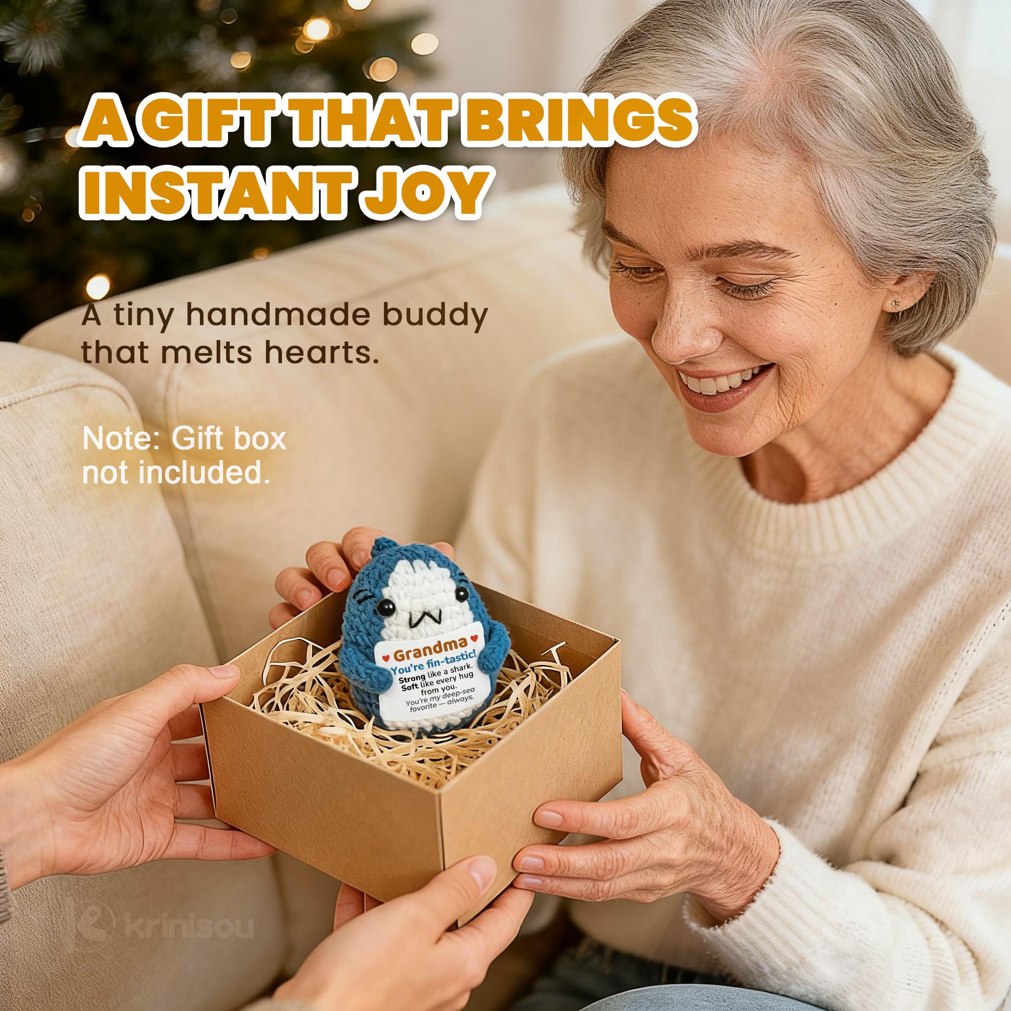 Cute Design with a Fun Message: Adorably crocheted into a tiny shark with a sweet and funny card that brings a smile every time. Its playful message adds warmth and humor — a charming way to make Grandma’s day brighter