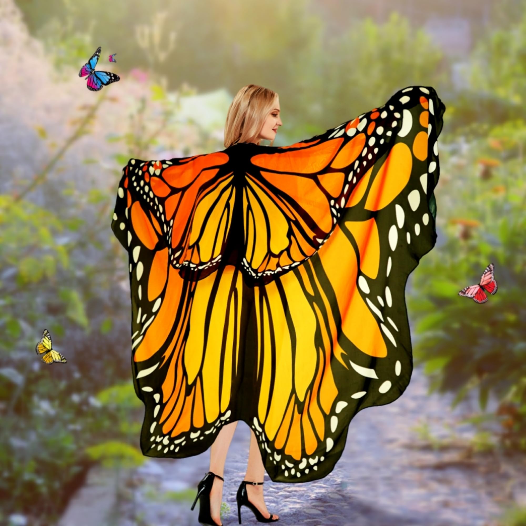 🦋【Applicable Occasion】: This beautiful adult butterfly costume woman cape is perfect for costume carnival ladies, Halloween party, Mardi Gras party, holiday party, beach party, dance props, outdoor outing, photo shoots, family gatherings and costume parties. It can also be used as a unique gift for friends, family, coworkers.