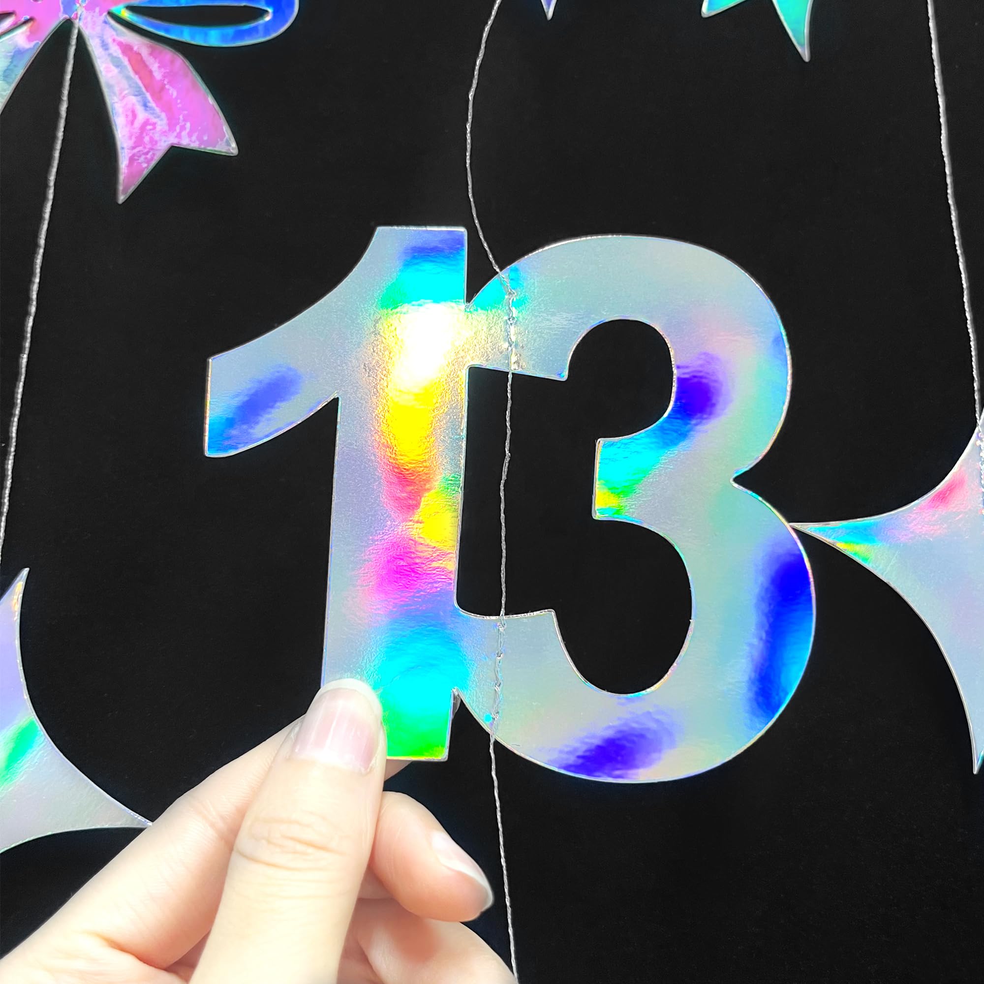 👍Environmental Material - Our iridescent 13th bow themed birthday party decorations garland are made with high quality double sided metallic paper cardstock, carefully hand-made and connected with thread, durable and reusable in nice and bright colors