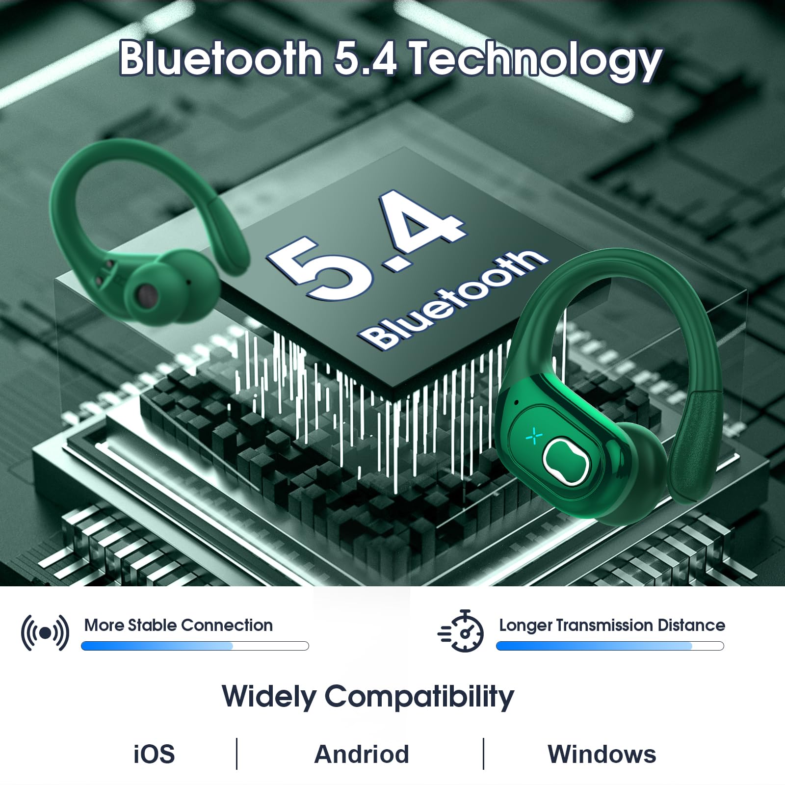 Ergonomic Sports Design and IPX7 Waterproof: The Wireless earbuds sport features ear hooks made of an innovative TPU (elastic) material that not only solves the problem of bluetooth earphones falling off when running, but is also comfortable to wear and anti-allergic. The earphones wireless bluetooth are equipped with nano-coated waterproof material, which can effectively prevent splash damage caused by sweat and raindrops, especially for jogging, gym, yoga and more sports.