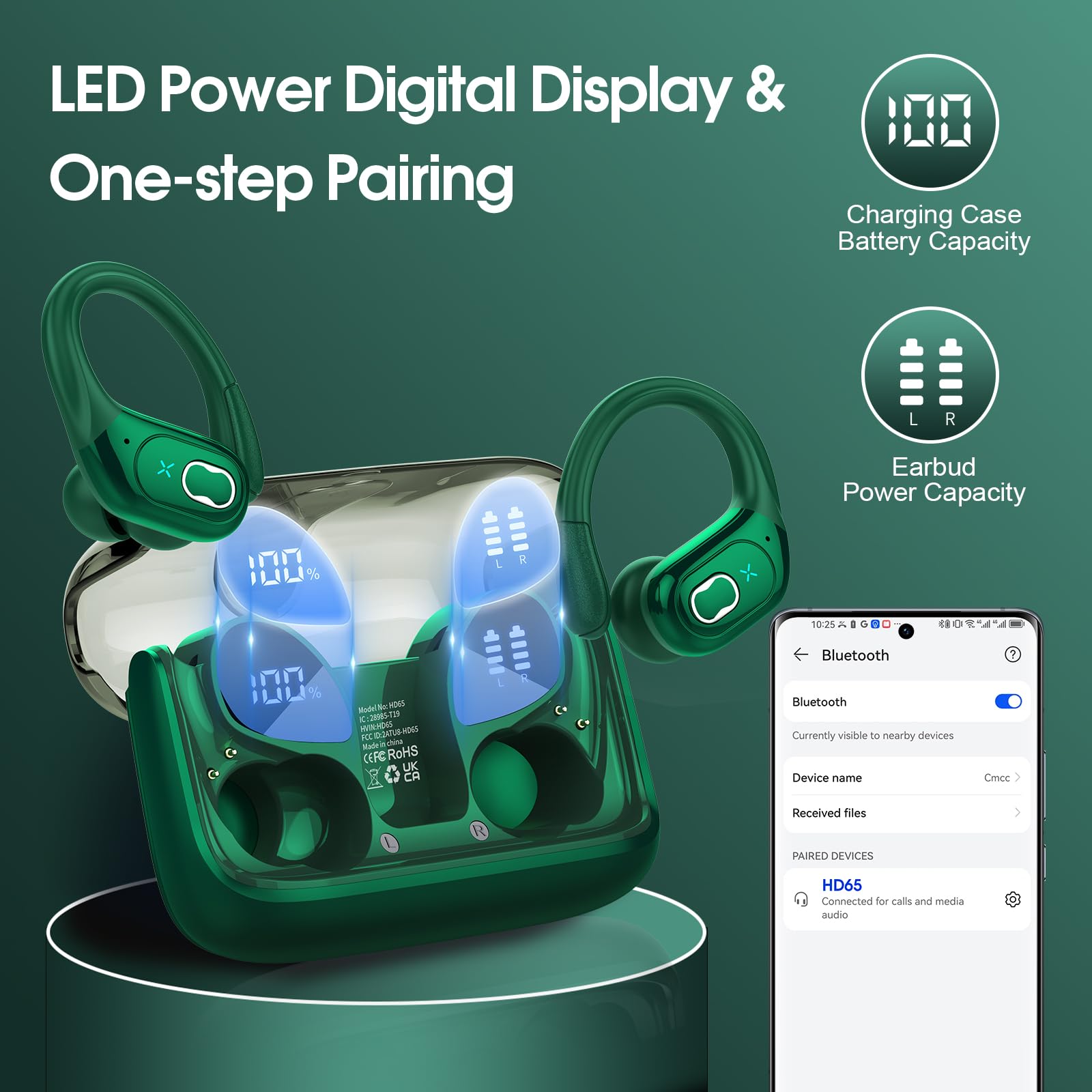 Leading Bluetooth 5.4 Technology and Easy Pairing: Features with the advanced Bluetooth 5.4 chip technology, Aptkdoe HD65 wireless headphones support HFP A2DP HSP AVRCP, which provides instant pairing and stable transmission without interruptions, with a stable connection distance of up to 33ft. The moment you open the case, the earbuds instantly and effortlessly pair with your previously connected device, sparing you from the hassle of manual pairing and long connection times.