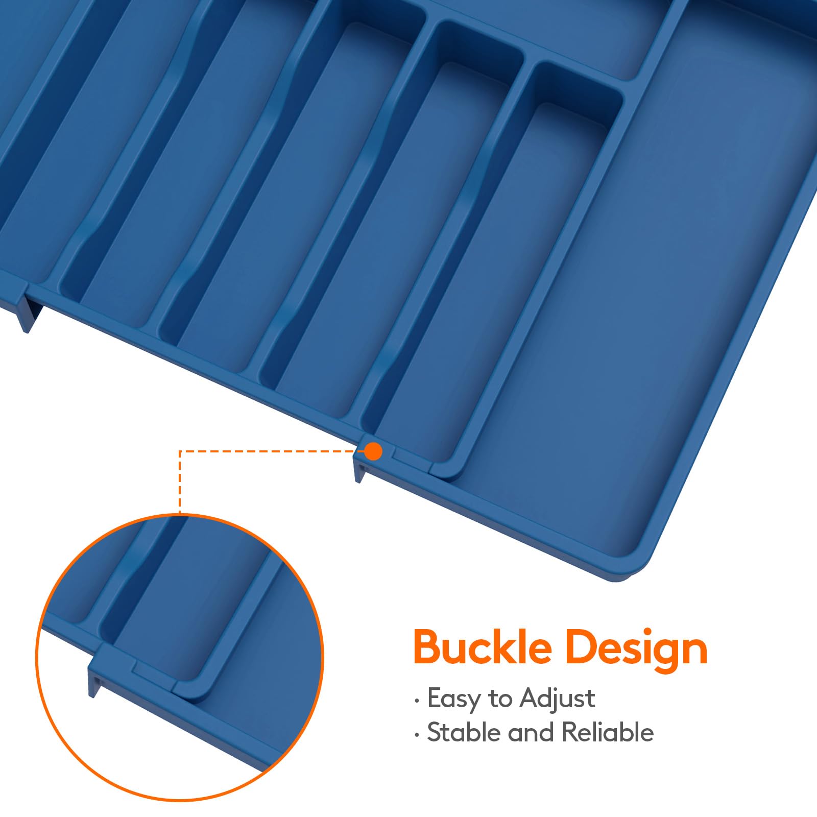 Thoughtful Design: Unique groove design for easy access to cutlery; The buckle design ensures smooth sliding and effortless adjustment, preventing partition displacement. Lifewit utensil holders bring seamless order to your kitchen!