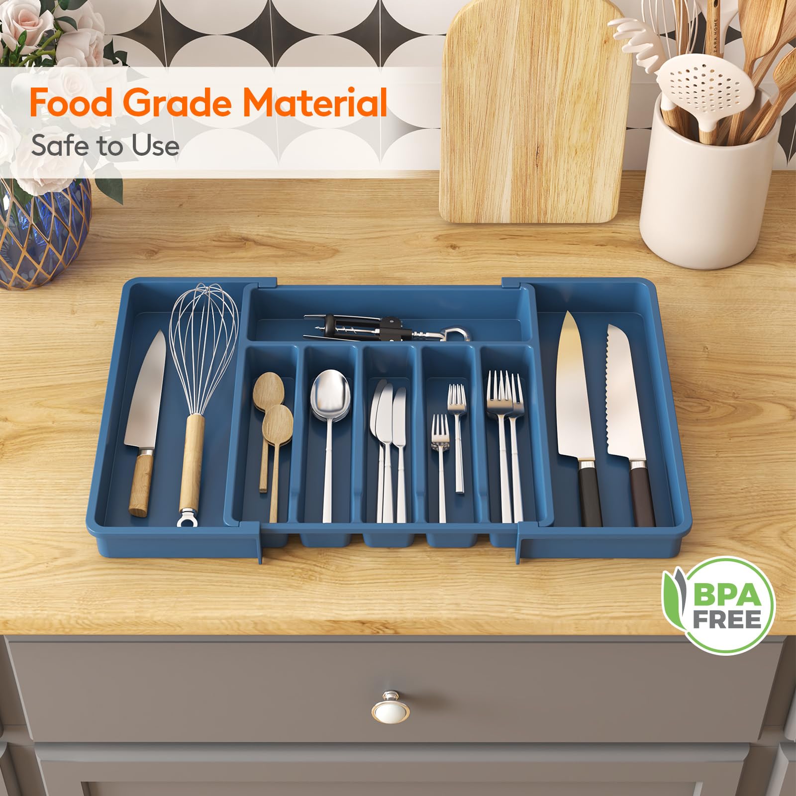 Robust and Safe: This kitchen drawer organizer is crafted from premium PP material, BPA-free and built to last. It ensures your silverware is stored in a healthy, safe environment for worry-free use