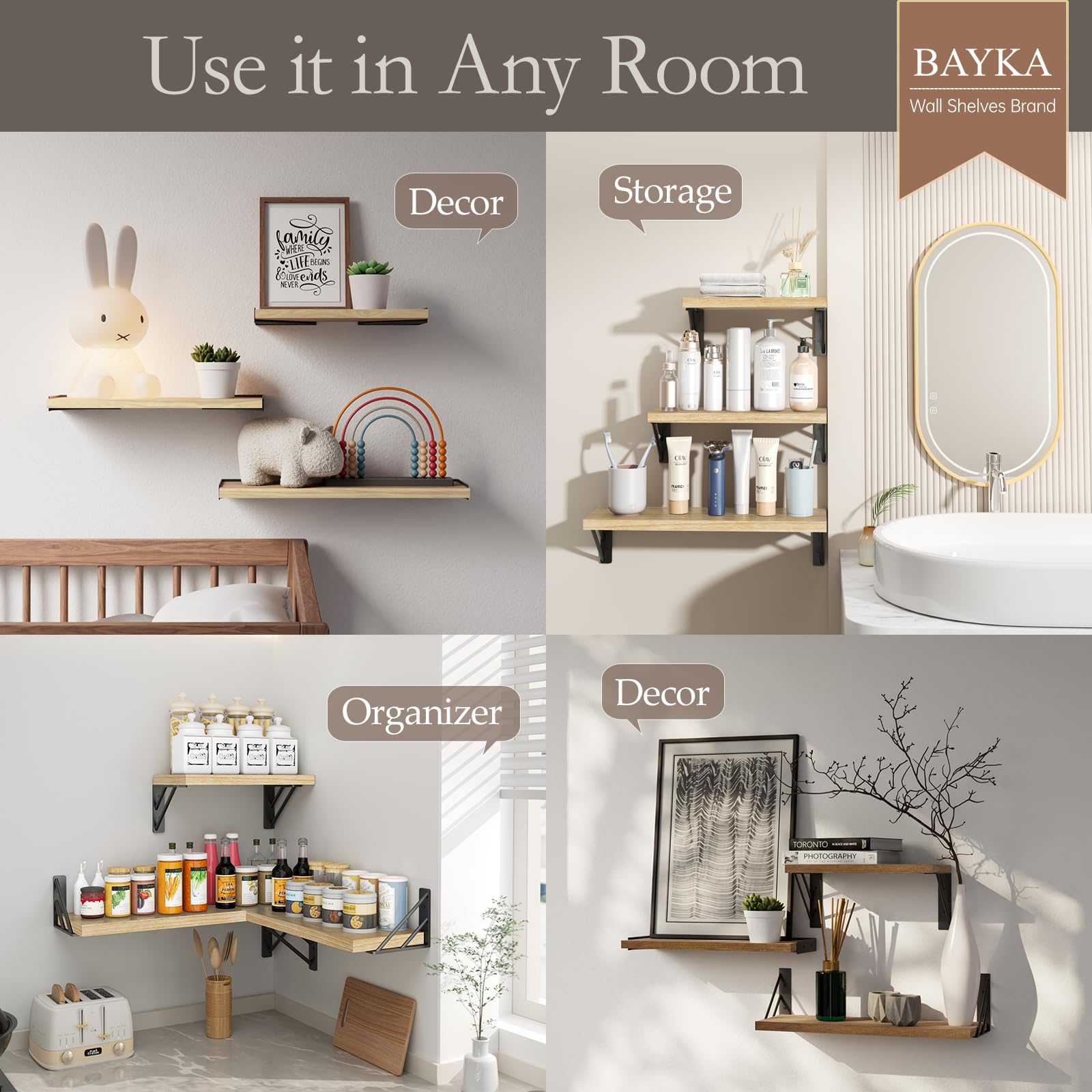 【Extra Uses】 BAYKA floating shelves can be used as cat shelves to "play" with your cat, giving cute cats extra space to move and rest without taking up floor space, which makes them more active. Every shelf can hold 40 pounds, and the sturdy structure allows the cat to jump on or off easily and safely.