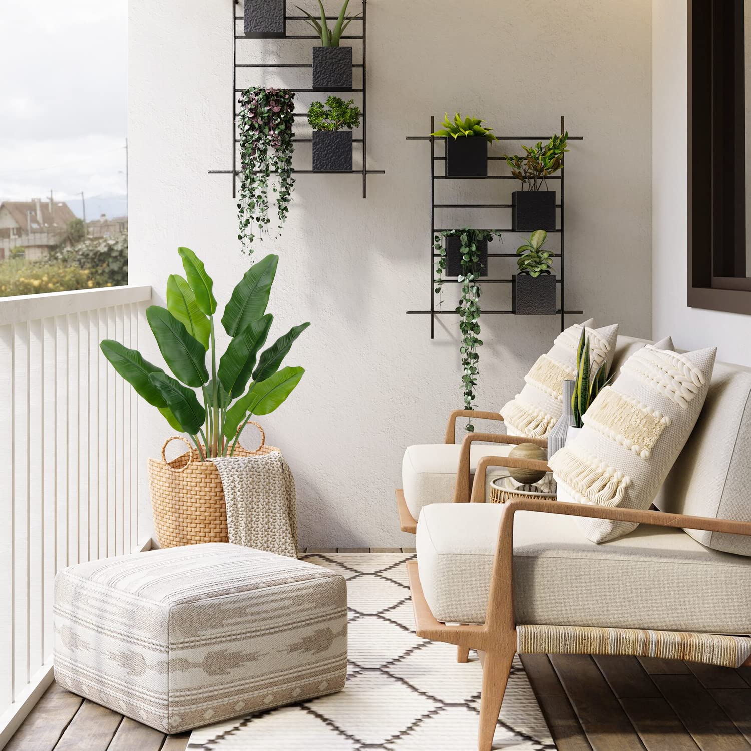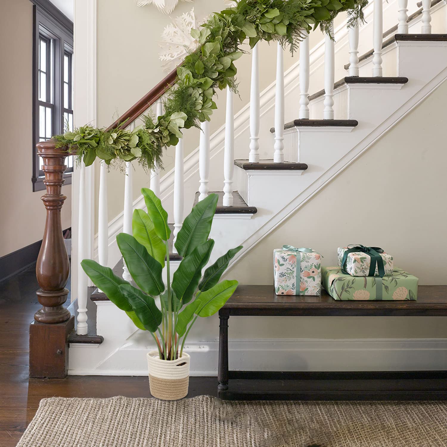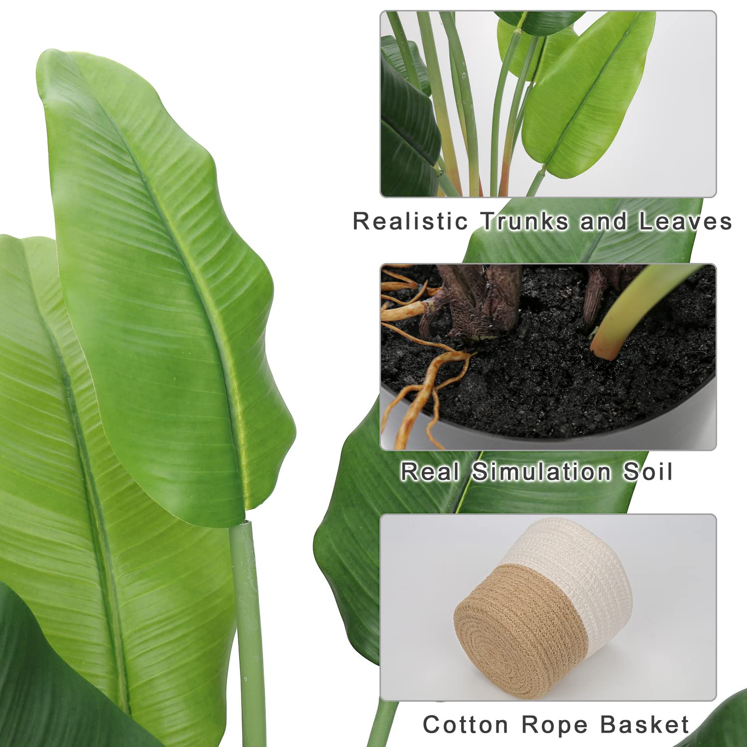 Sturdy & Adjustable: Each artificial plant comes with a cotton pot as the main picture. All the leaves and branches are installed already when you receive, just need only 2-3 minutes to shape it to reach its fullest size when removed from the secure box. Our faux Tropical Palm Fern Banana Plants has sturdy inner metal wires, you can adjust the trunk and insert leaves to the shape you liked.