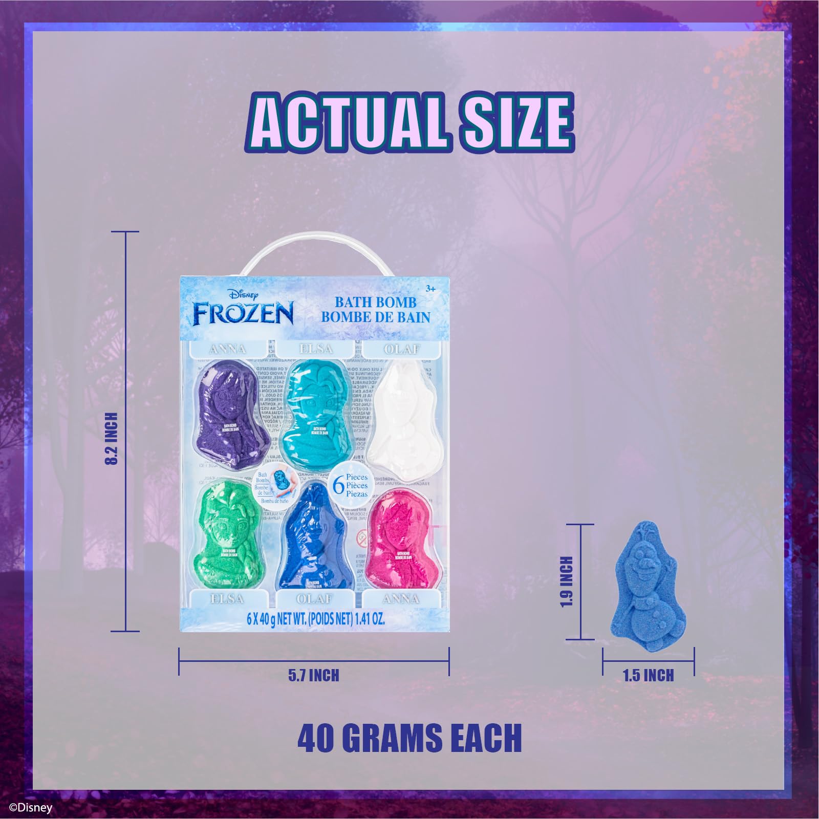SET INCLUDES: 6 40g bubblegum scented, molded bath bombs. Each bath bomb is molded into different Disney Frozen characters.