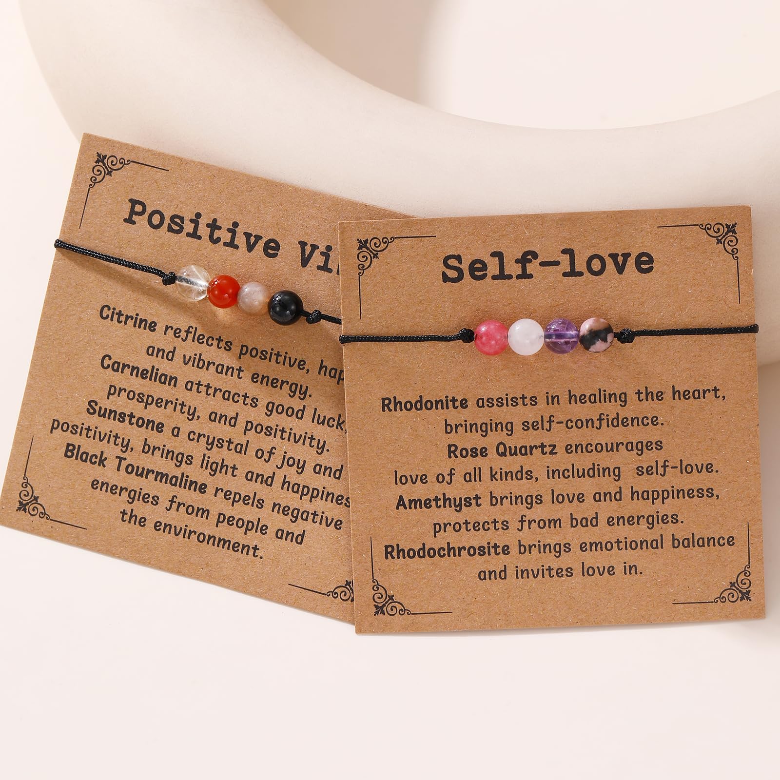 SIZE: The uplifting bracelet come with sliding knot closure with adjusting from 4"-11". Four natural healing stones are 6mm, 0.8mm nylon cord for a light comfortable wear. Expandable string bracelet is easy to open and close, suitable for most women.