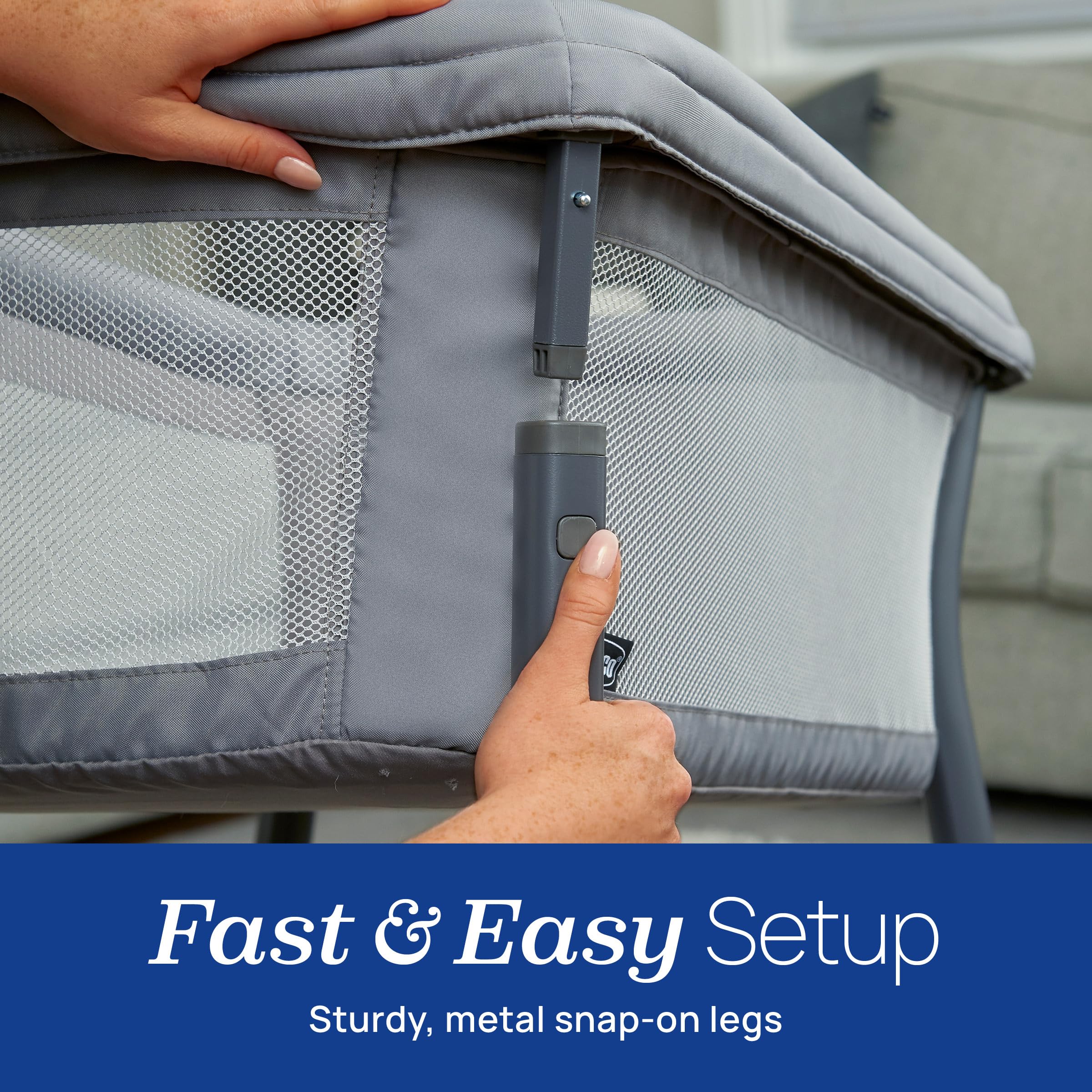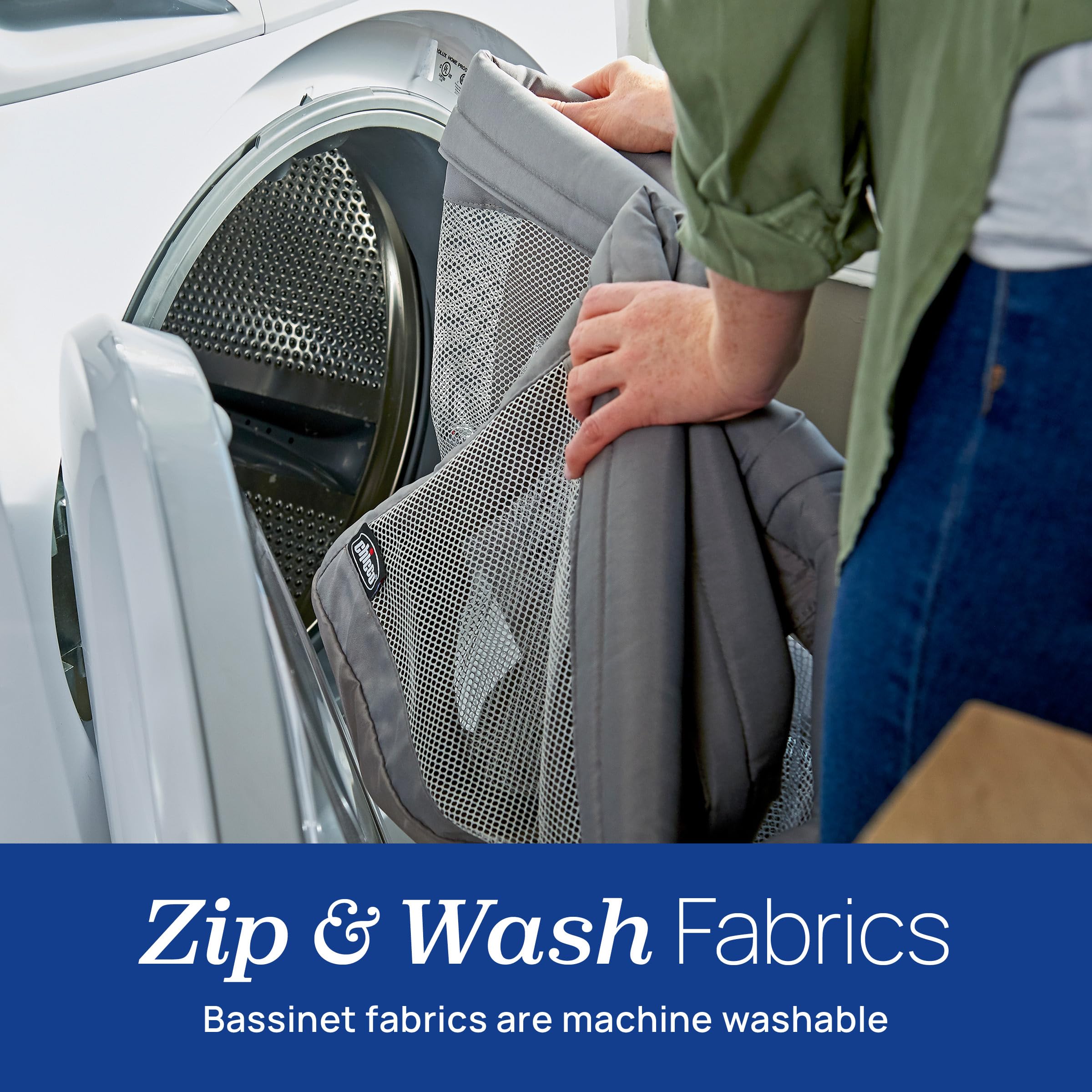 FIRM, FLAT SLEEP SURFACE – Includes a waterproof mattress with a firm, flat sleep surface, a fitted sheet and zip-off, machine washable bassinet fabrics. Mesh side panels provide reassuring visibility and airflow.