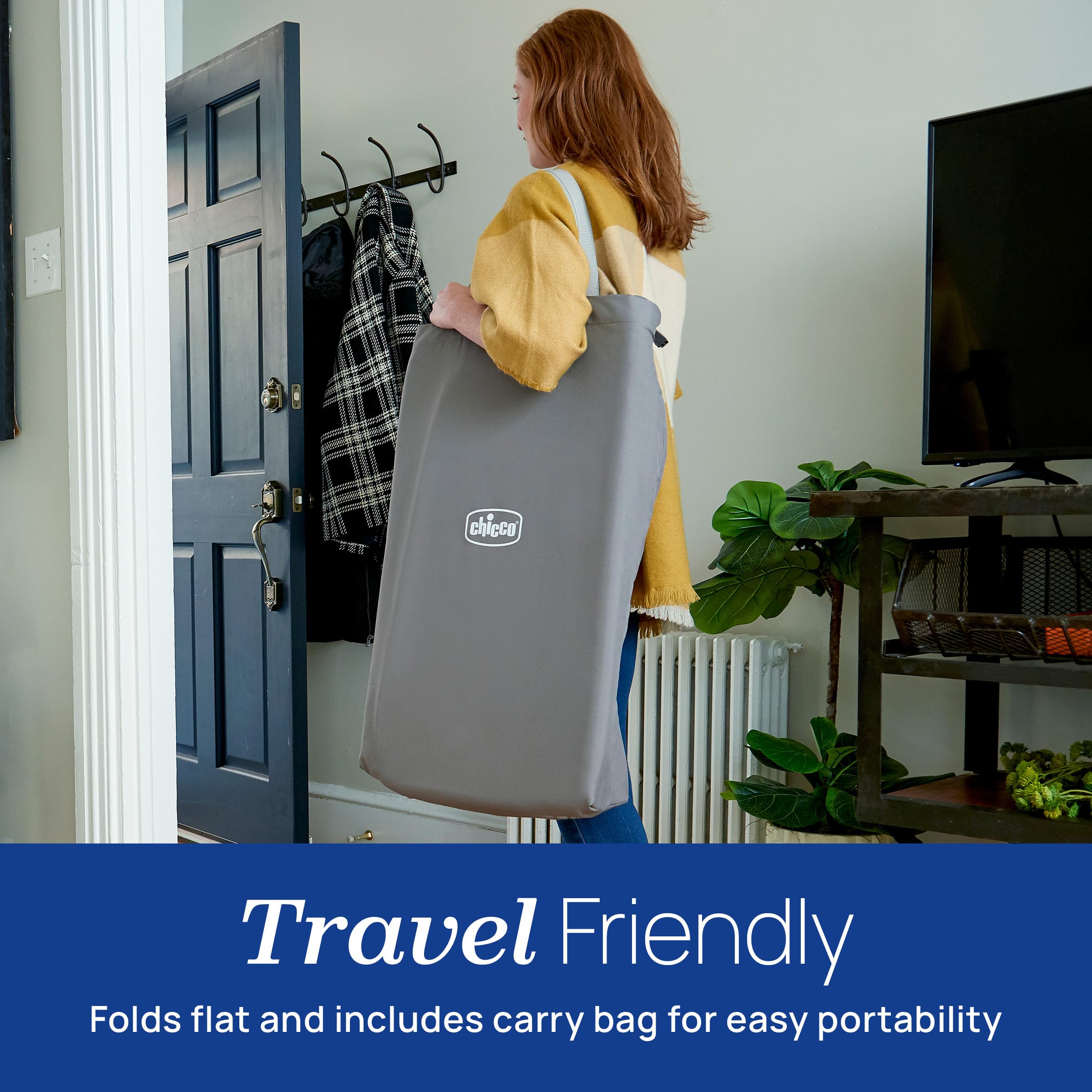 Not too big, not too small, LullaGo Anywhere Portable Bassinet is just the right size travel bassinet for your newborn’s first months. Weighing only 12 pounds, its lightweight design, compact footprint and convenient carry bag provide restful sleep at home and away. LullaGo Anywhere bassinet features a streamlined design with a firm, flat sleep surface and mesh side panels for visibility and airflow. The waterproof mattress includes a bonus fitted sheet and the bassinet fabrics zip-off for easy machine washing. A mesh storage pocket keeps little essentials conveniently close. Sturdy metal legs snap on in seconds for easy setup. LullaGo Anywhere folds flat and fits inside the included carry bag for effortless travel and storage. The LullaGo Anywhere Portable Bassinet is GREENGUARD Gold Certified, meaning it is independently tested for low chemical emissions, contributing to healthier air quality around baby.