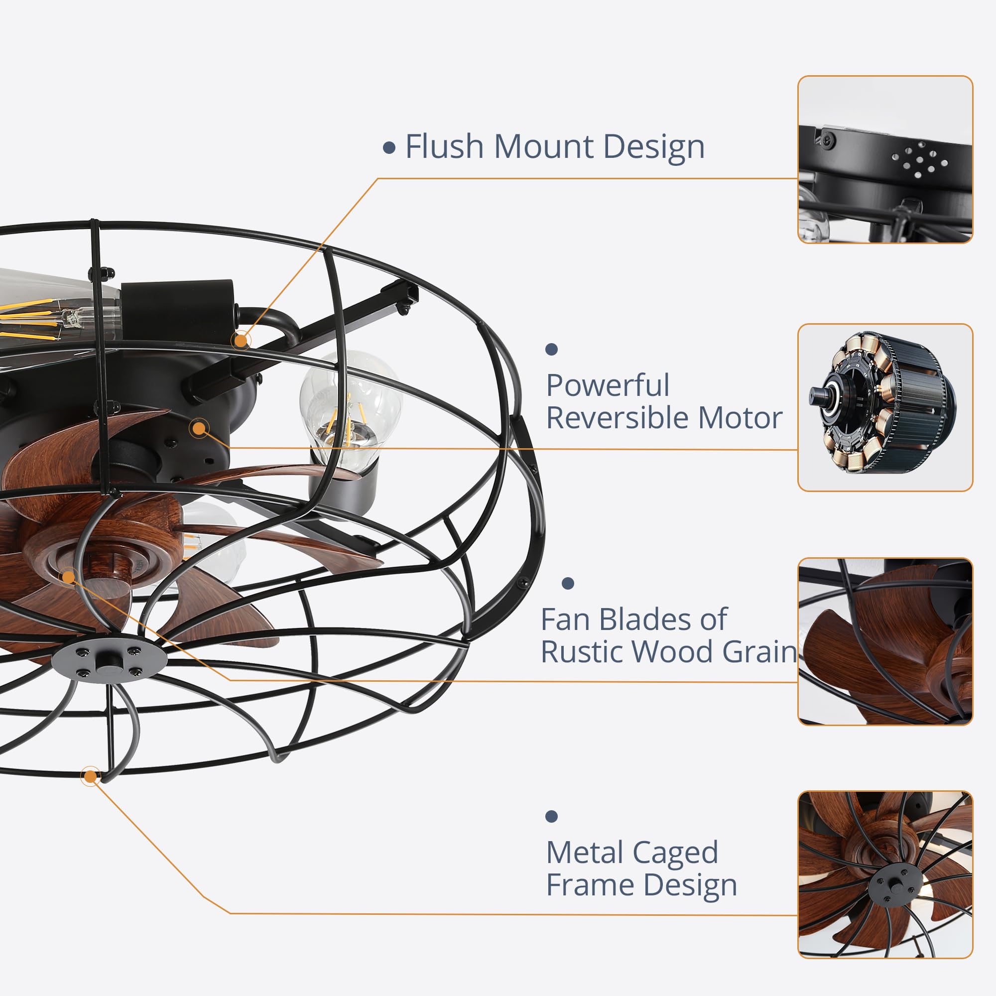 Farmhouse Caged Design: The industrial low profile ceiling fan is designed with 7 ABS fan blades of rustic wood grain and black metal caged frame. 20 inch small ceiling fans can better suit a normal size room. It's a perfect style for your home, living room, bedroom, dining room