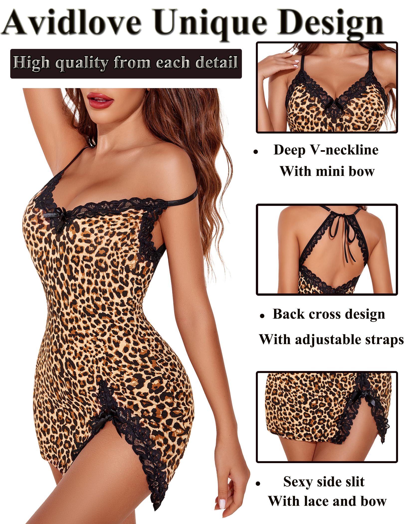 đăSoft Stretchy FabricăAvidlove sexy chemise is made of soft modal cotton fabric, skin-friendly and comfortable, smooth and wrinkle resistant, dirt resistant, and the fabric is stretchy enough to shape your curves.
