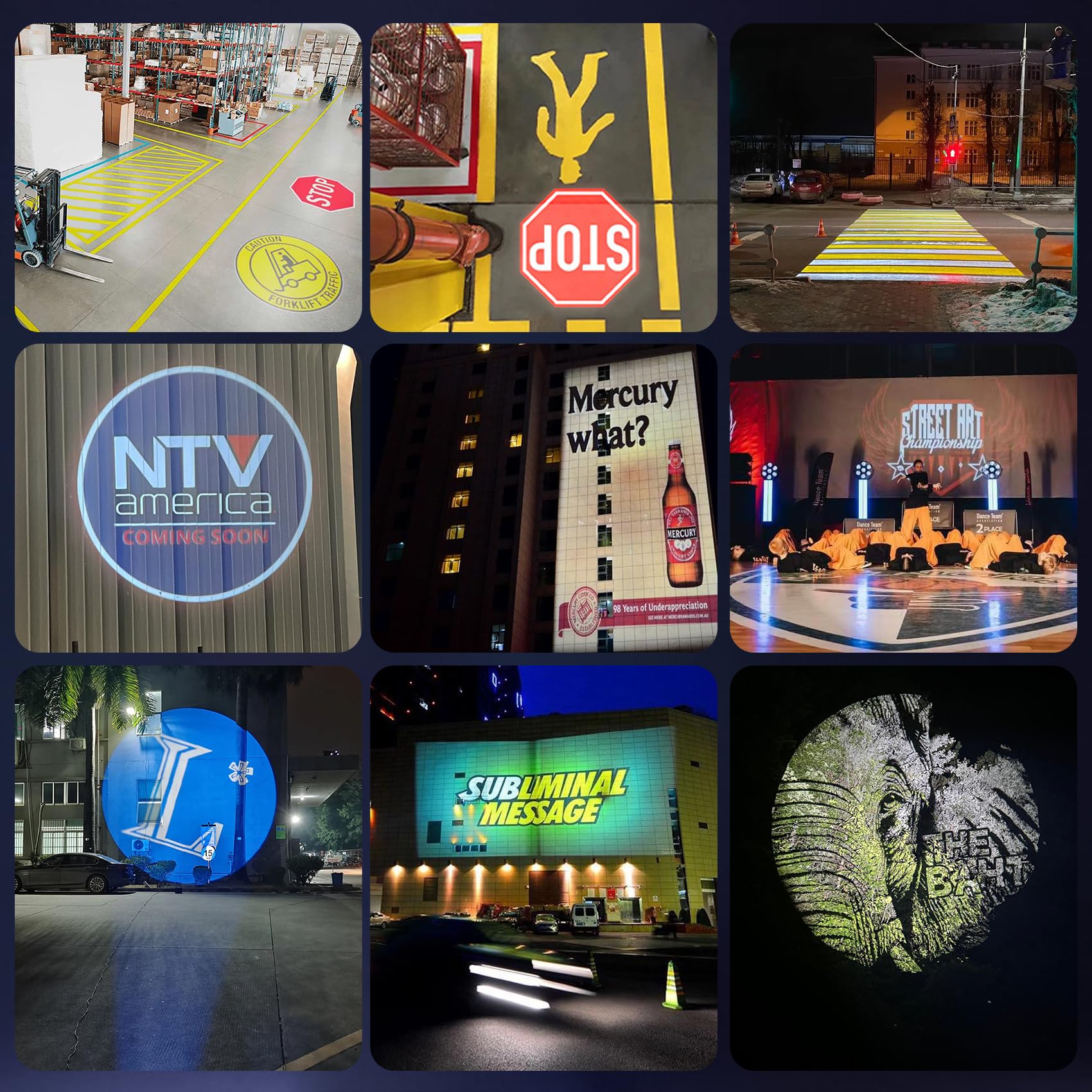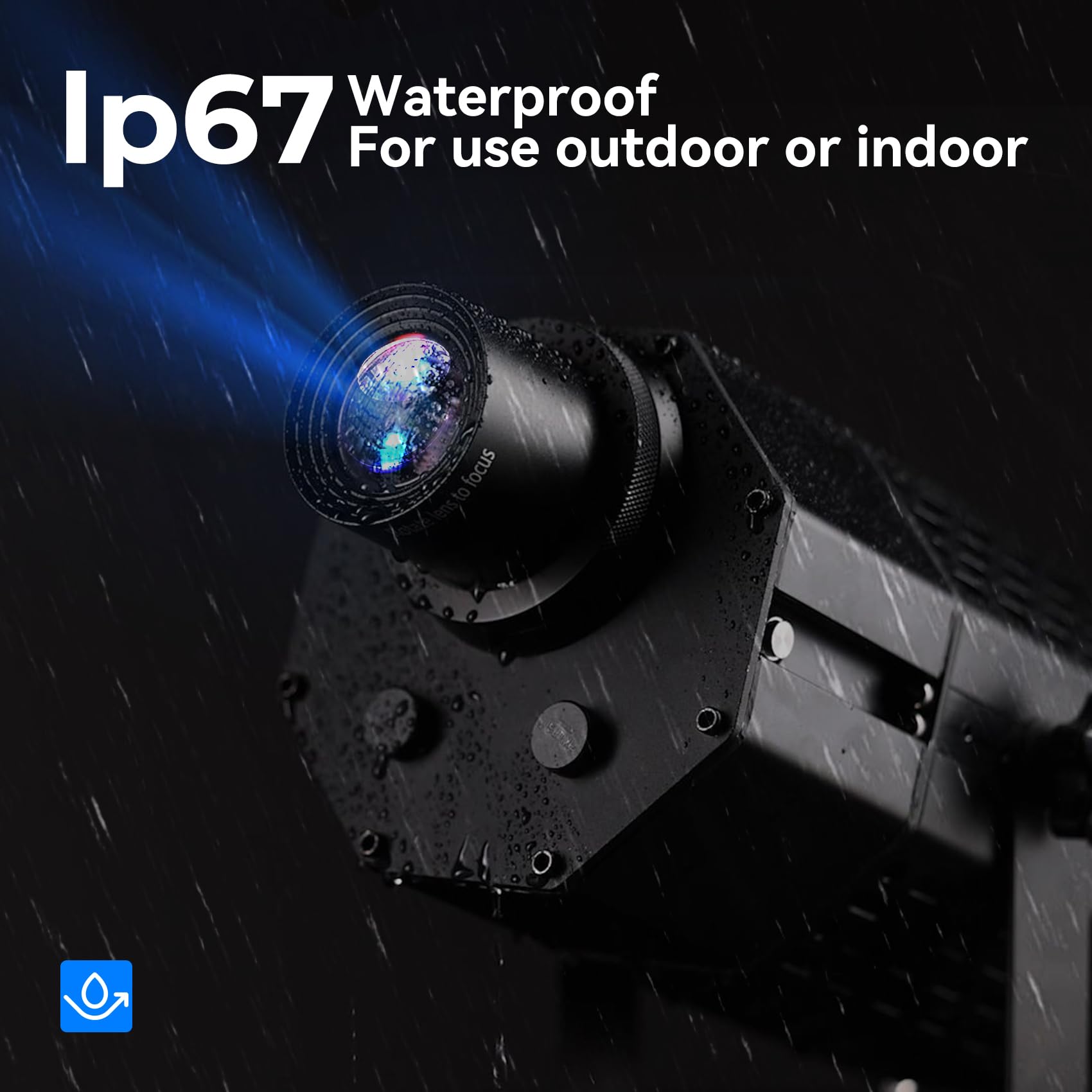 Weather resistance: the projector is made of strong aluminum alloy, which is strong, non-corrosive and has perfect heat dissipation. The Gobo lamp is waterproof and has received an IP67 weather-resistance rating, meaning it can be used outdoors all year round.
