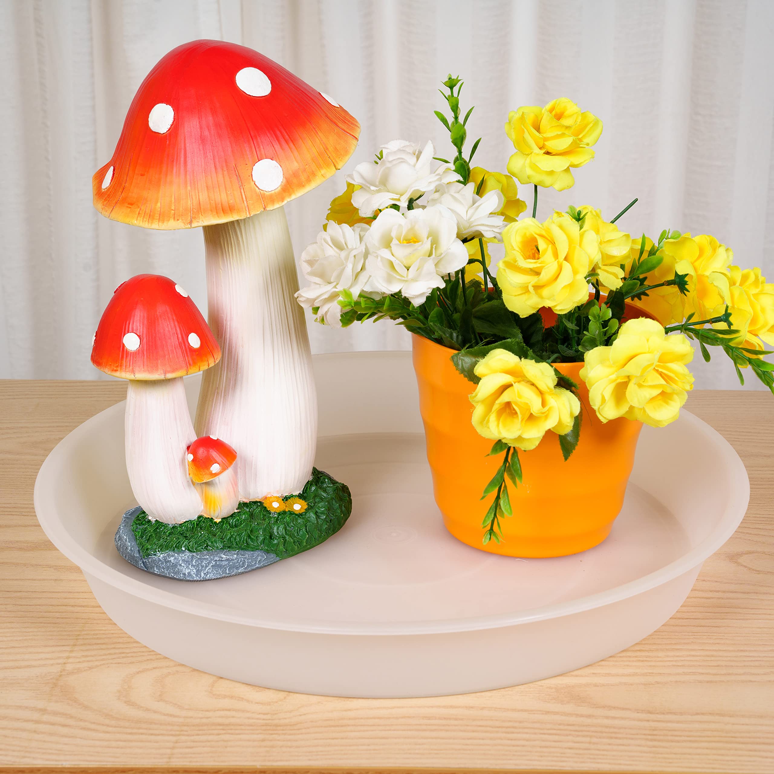 【OUTDOOR AND INDOOR USE】Long lasting strong and sturdy plastic tray is best choice for potted plants inside house or outdoor. No worries from Weather conditions for these plant saucers.
