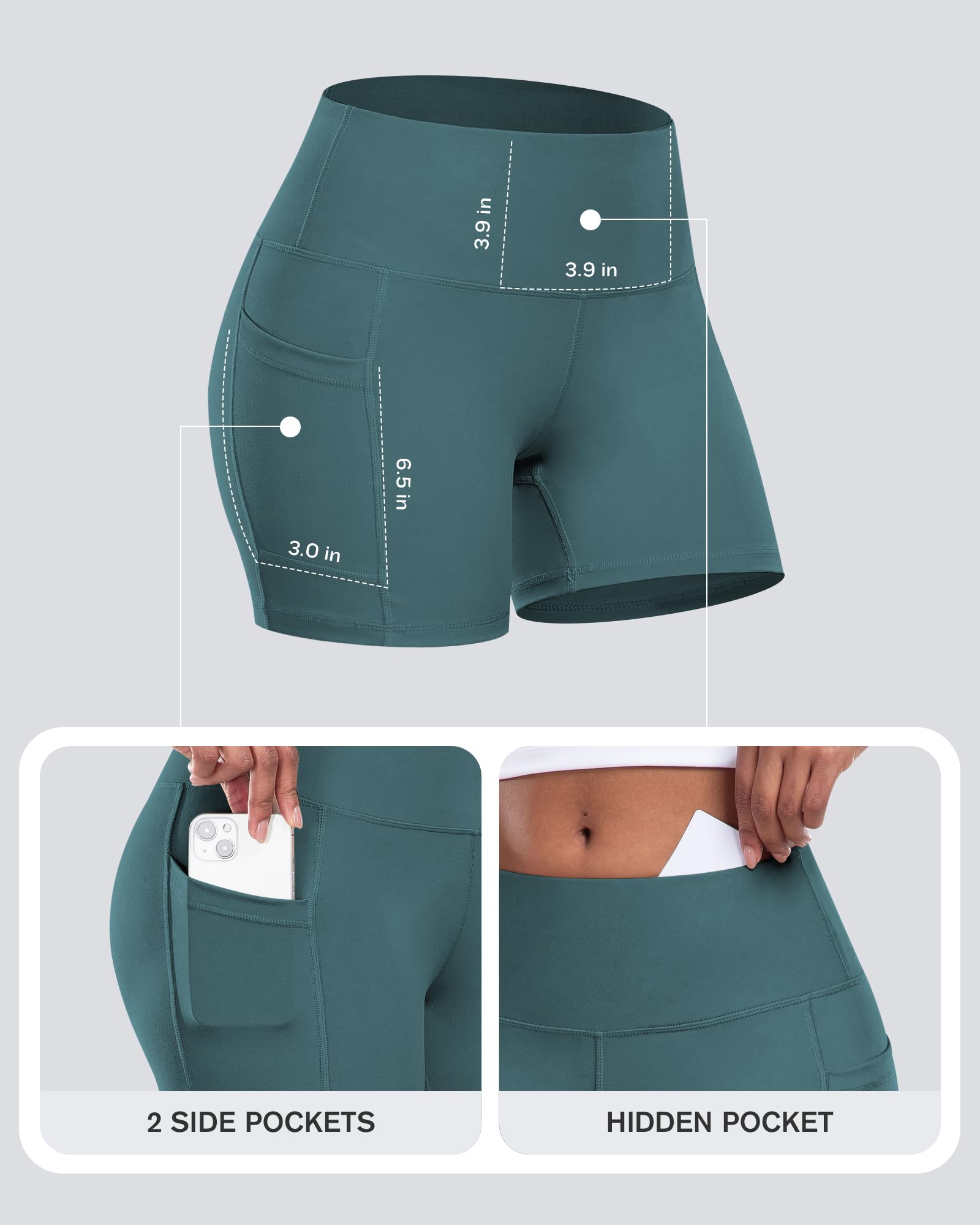 ✅ 2 OUTER POCKETS & 1 HIDDEN POCKET - The biker shorts have large capacity pockets on both sides and a hidden pocket at the waist to use. The deep enough pockets can meet the storage needs of life and sports, such as cell phones, keys, wallets and cards, making it easier for users to carry essentials during sports.