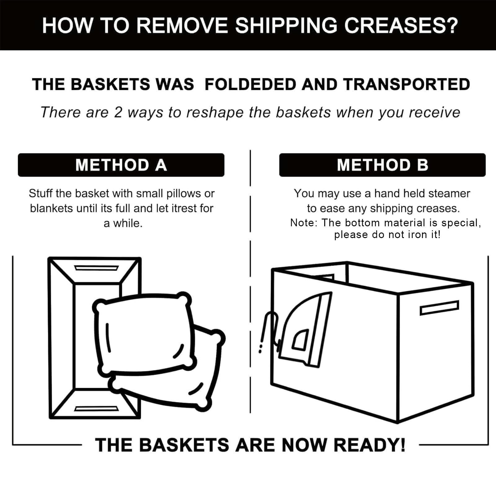 NOTE: The toy basket is folded, but it will turn back to its elegant shape quickly if you fill it with some towels or blankets, and iron is great idea to remove the creases