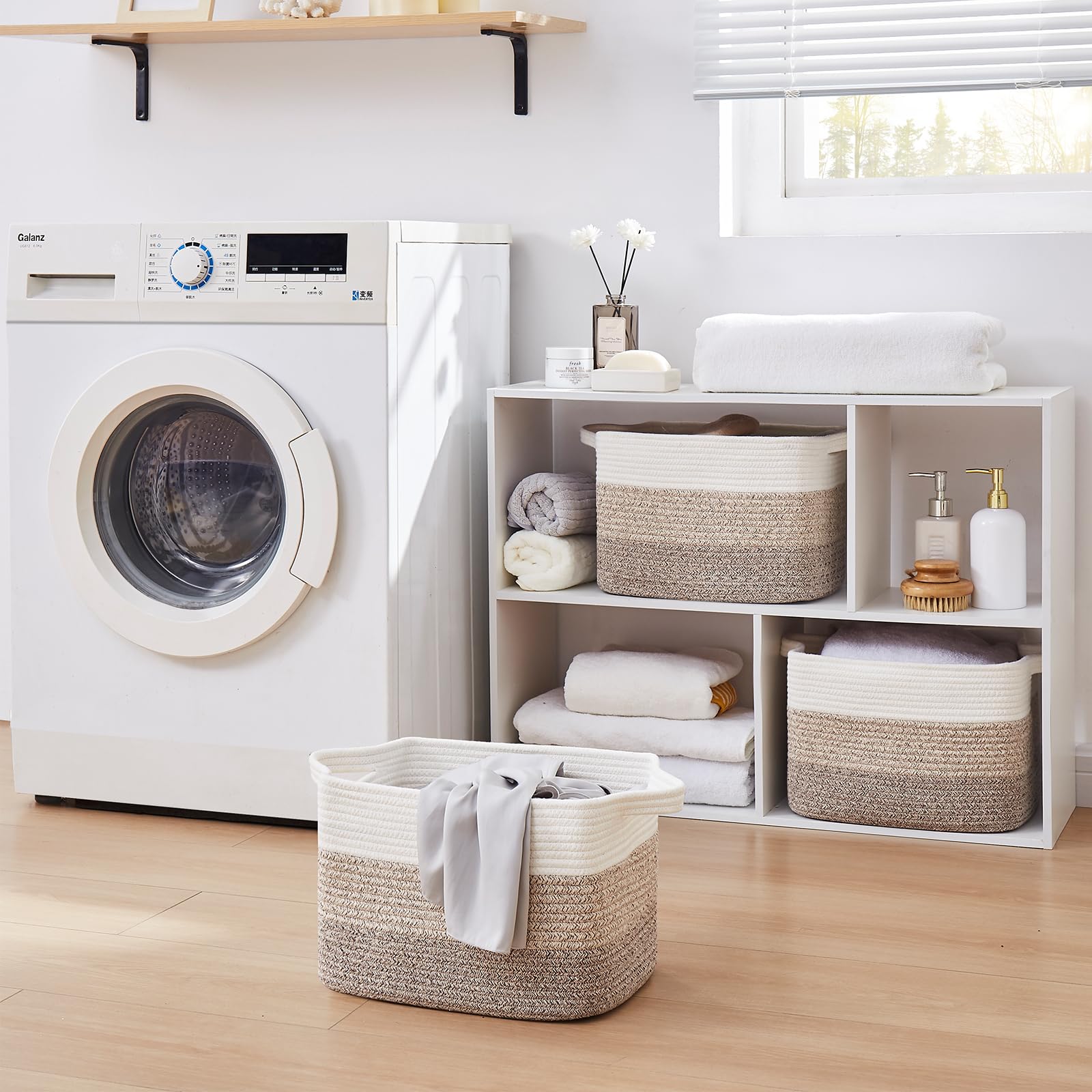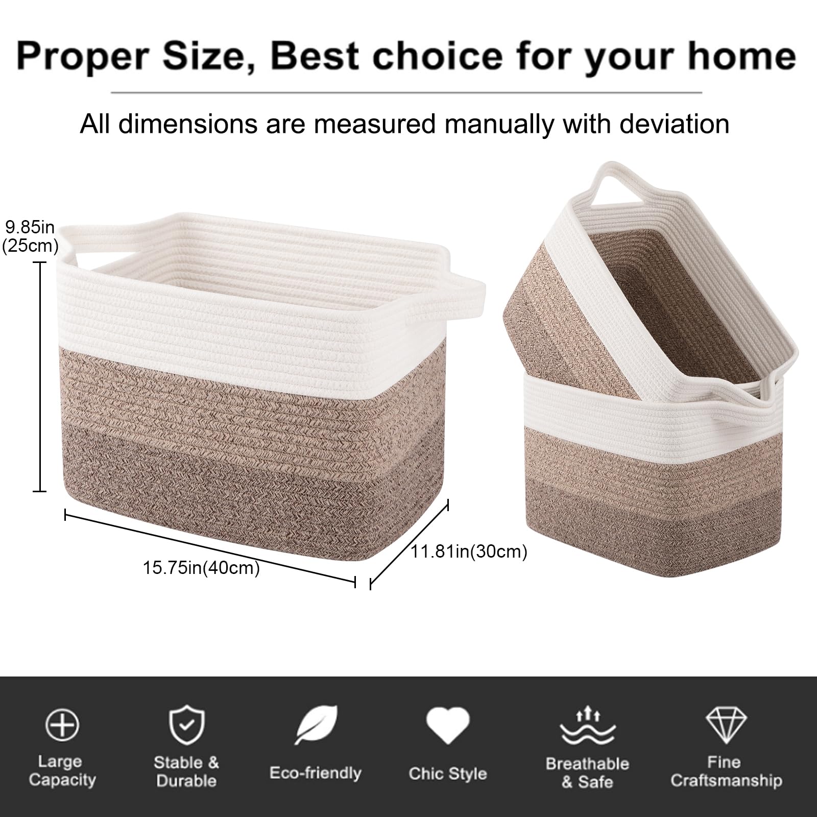 High Quality Cotton Rope Woven: Woven cotton thread is very soft and don't damage your floors and furniture. Seamless design, not easy to tear,More firm than rattan and plastic materials. Our storage basket has no harsh chemiacls added, and the cotton rope basket is safe for kids, elders and pets. Firm enough and stylish enough to go anywhere in the home