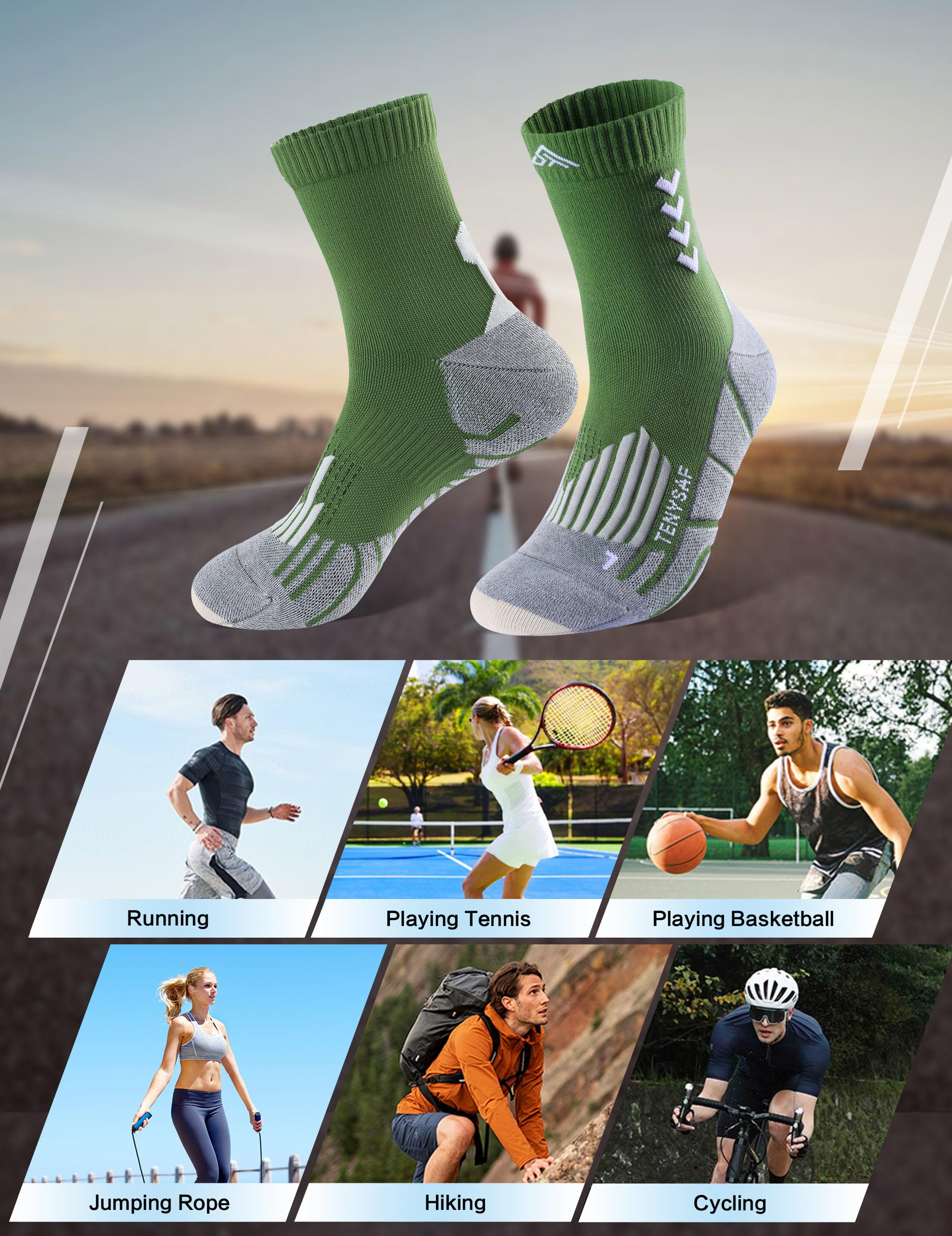Compression & Arch Support Design:The running socks provide about 35mmHg of compression,graduated compression technology promotes better blood circulation and muscle fatigu, prevent injury. Arch support design could enhance stability and reduce stress. So you will feel comfortable and safe during running, jogging, hiking baseball and other athletic activities.