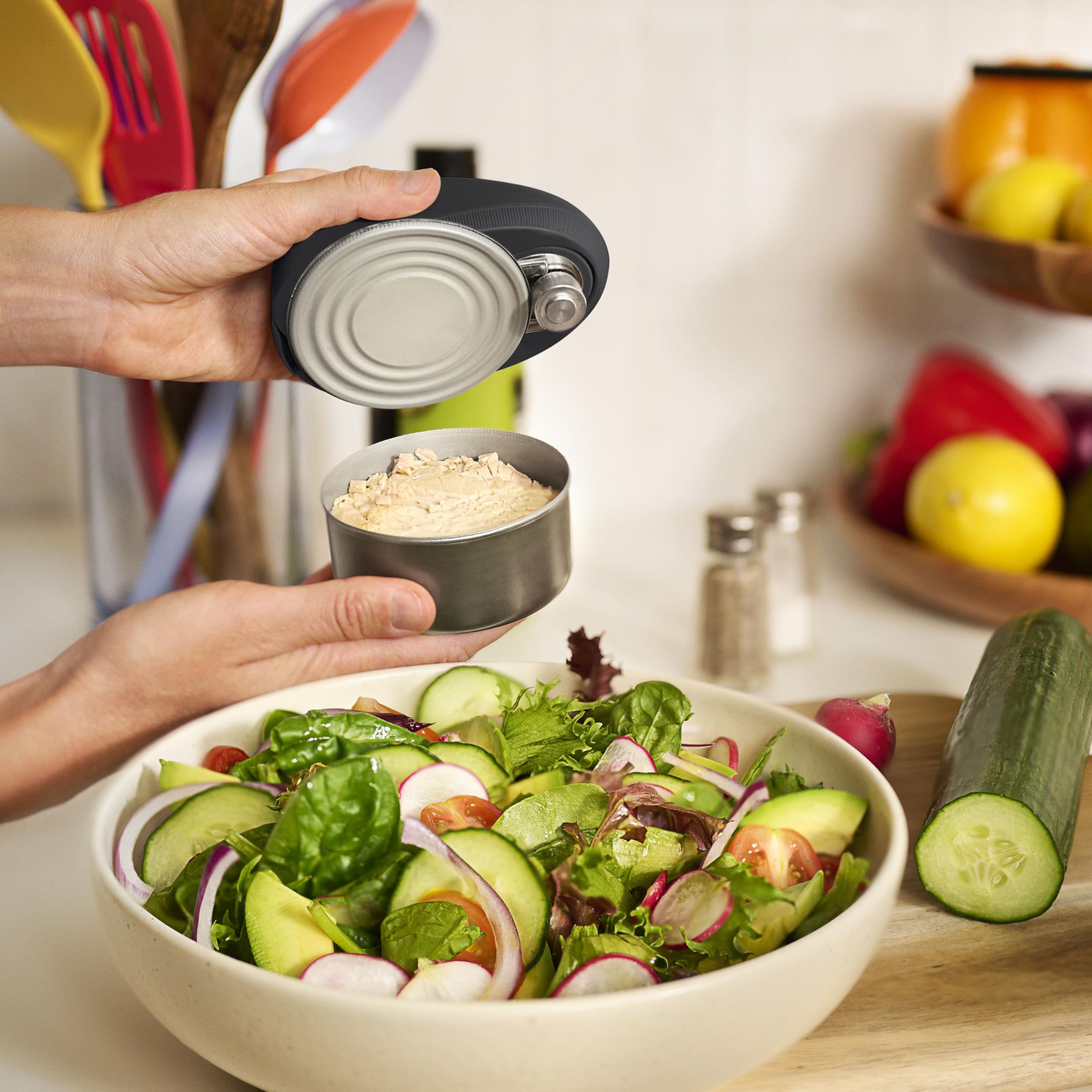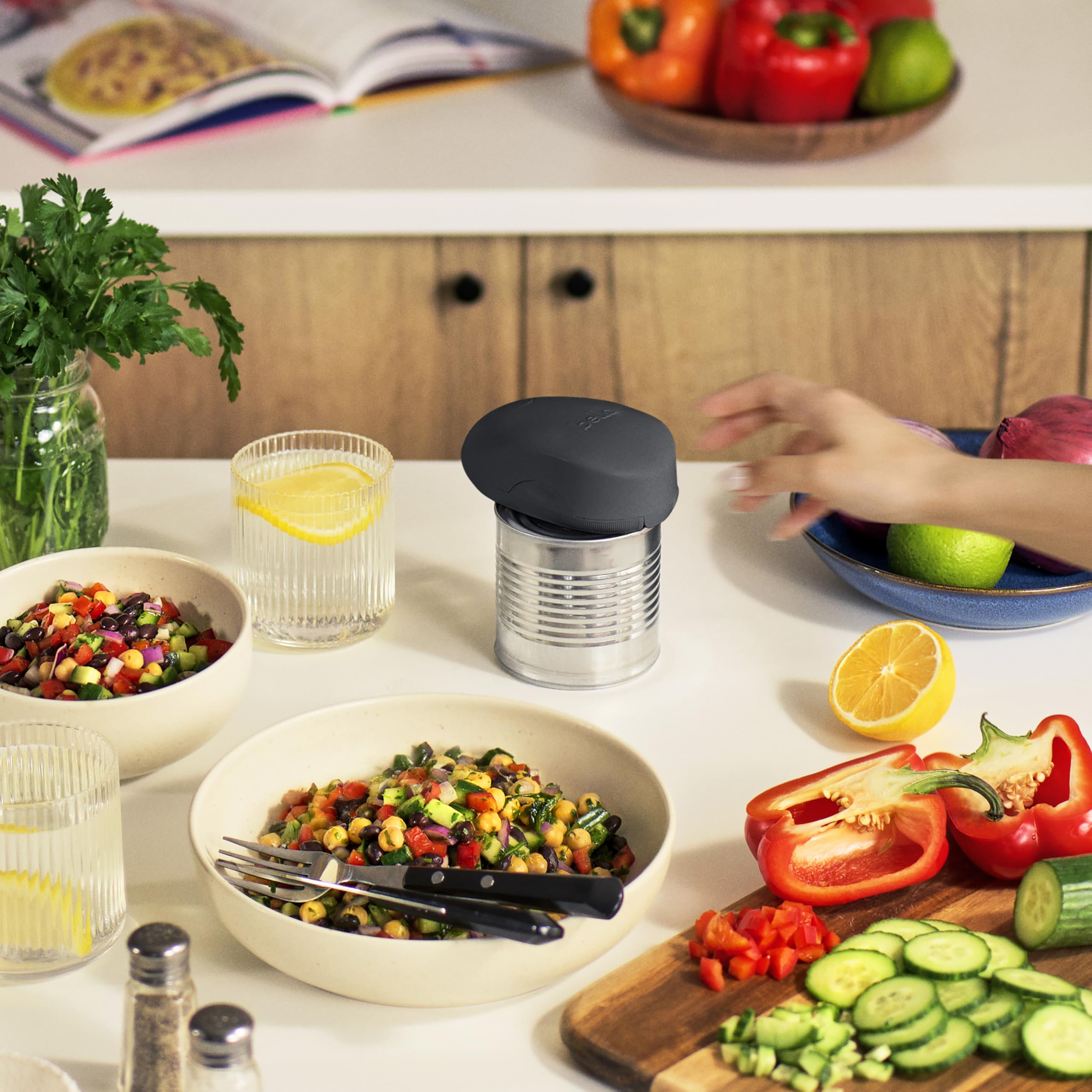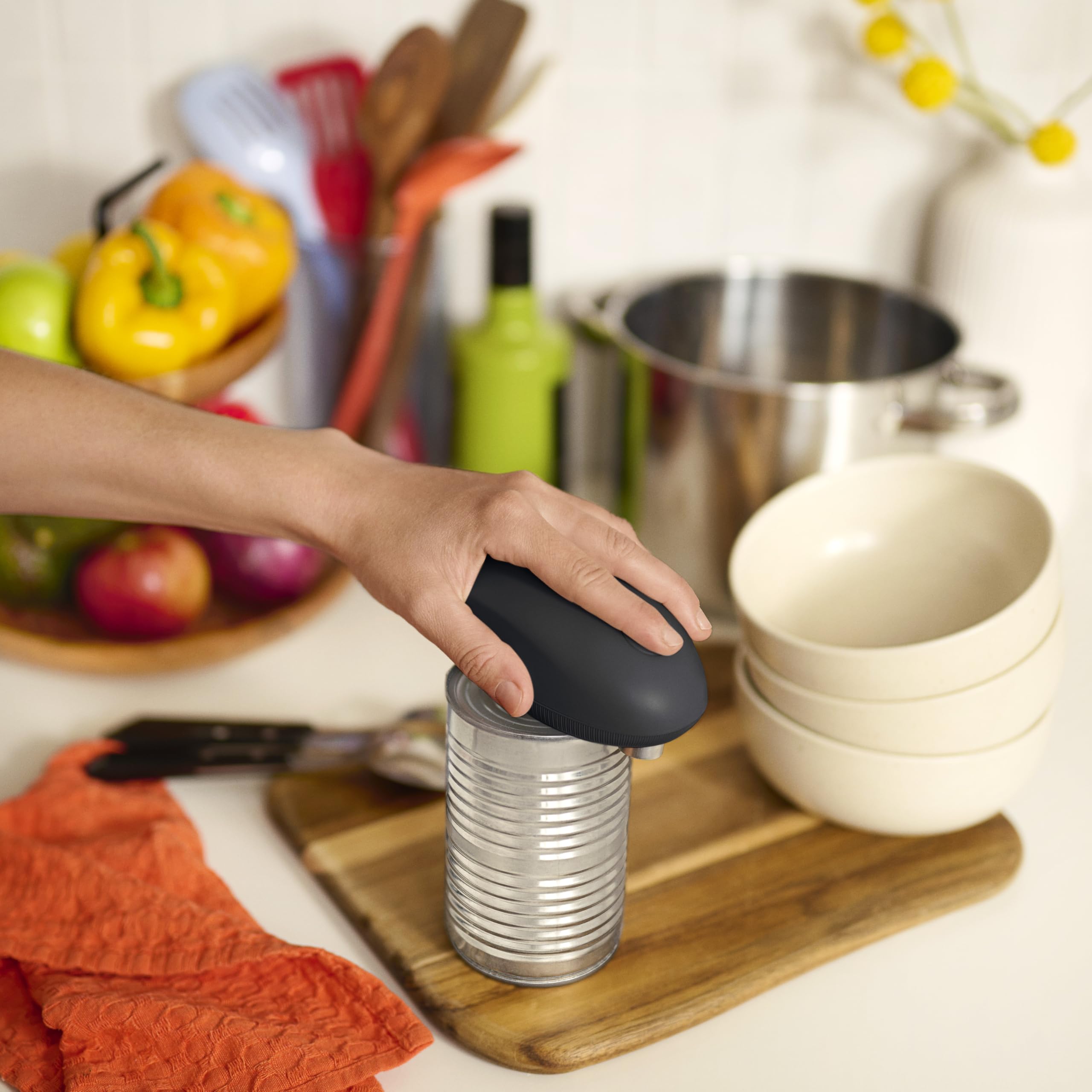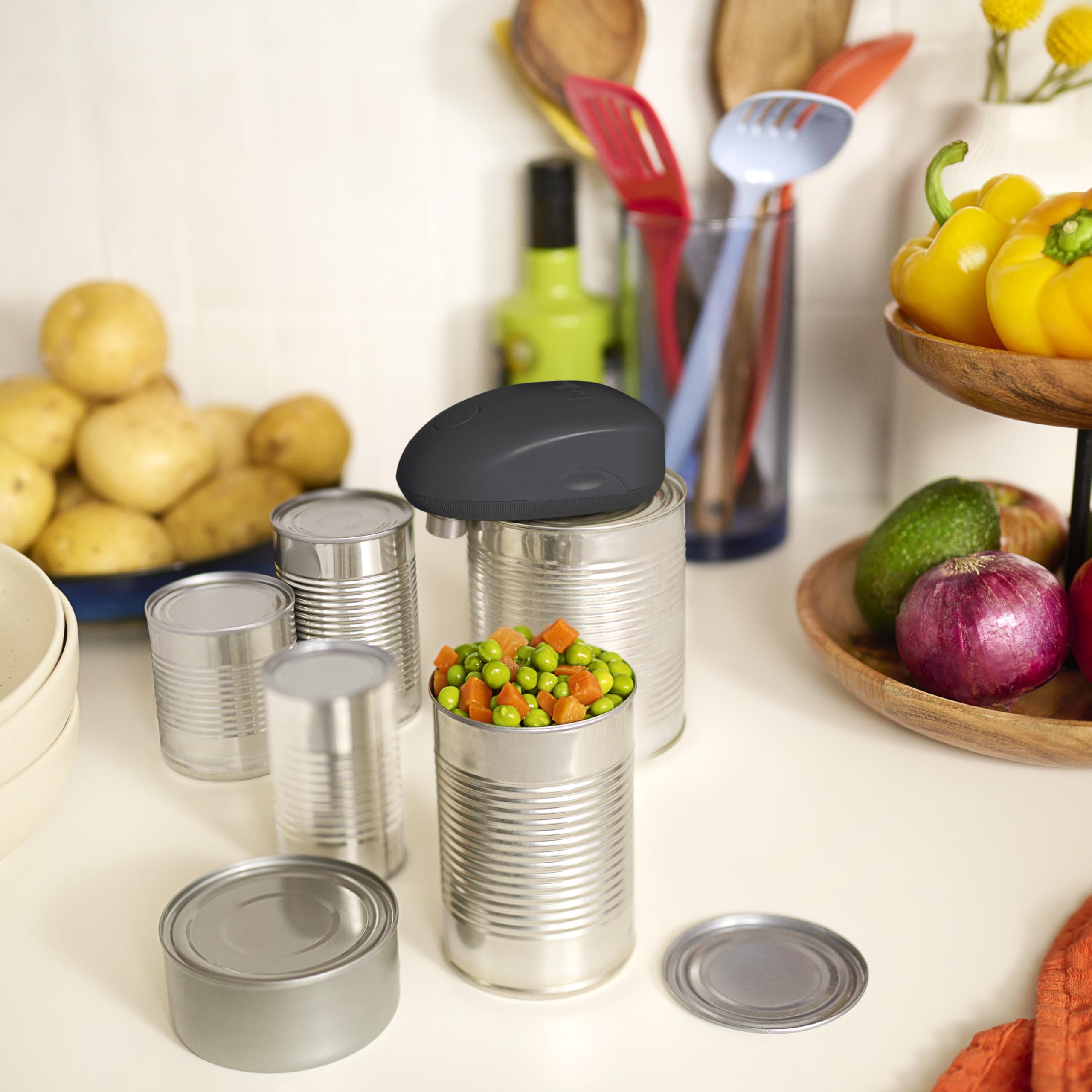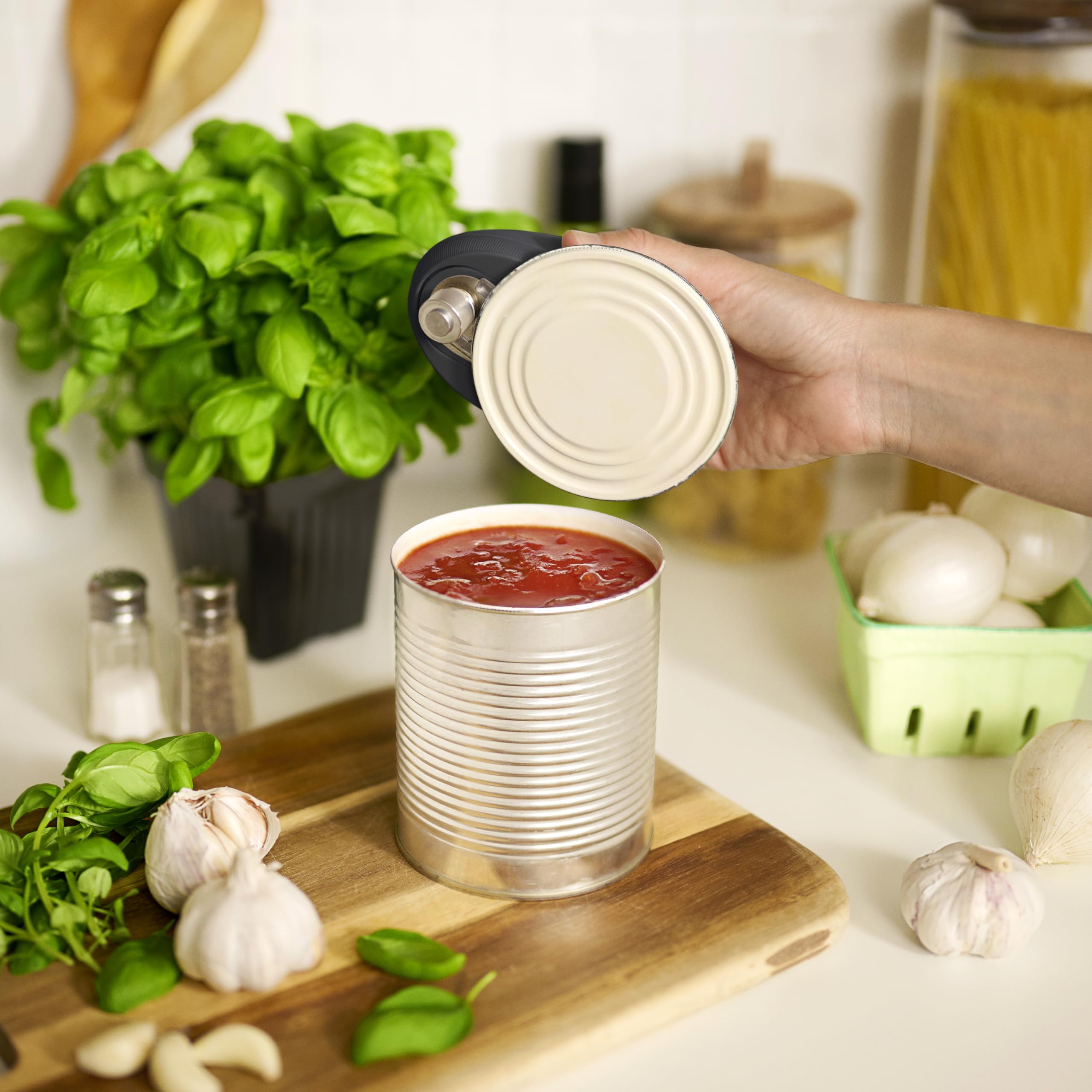 SIMPLE-TOUCH, HANDS-FREE OPERATION: Opens cans effortlessly at the push of a button—no twisting, no sharp edges, no mess. Just press and let it do the work.