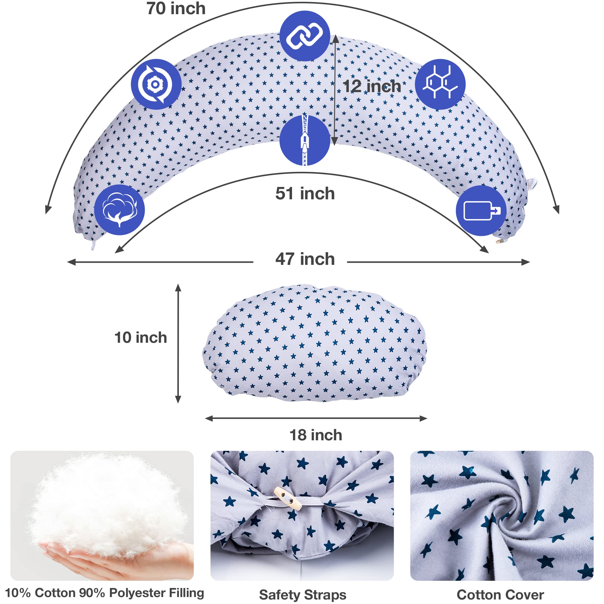 【Removable & Machine Washable】 With its 100% cotton, removable and machine washable cover for easy maintenance, hidden zipper to prevent any contact with your baby's skin, and filling of premium polyester cotton which you can add or remove the filling as needed to find your ideal nursing height, it provides a plush yet supportive surface for both you and your infant.