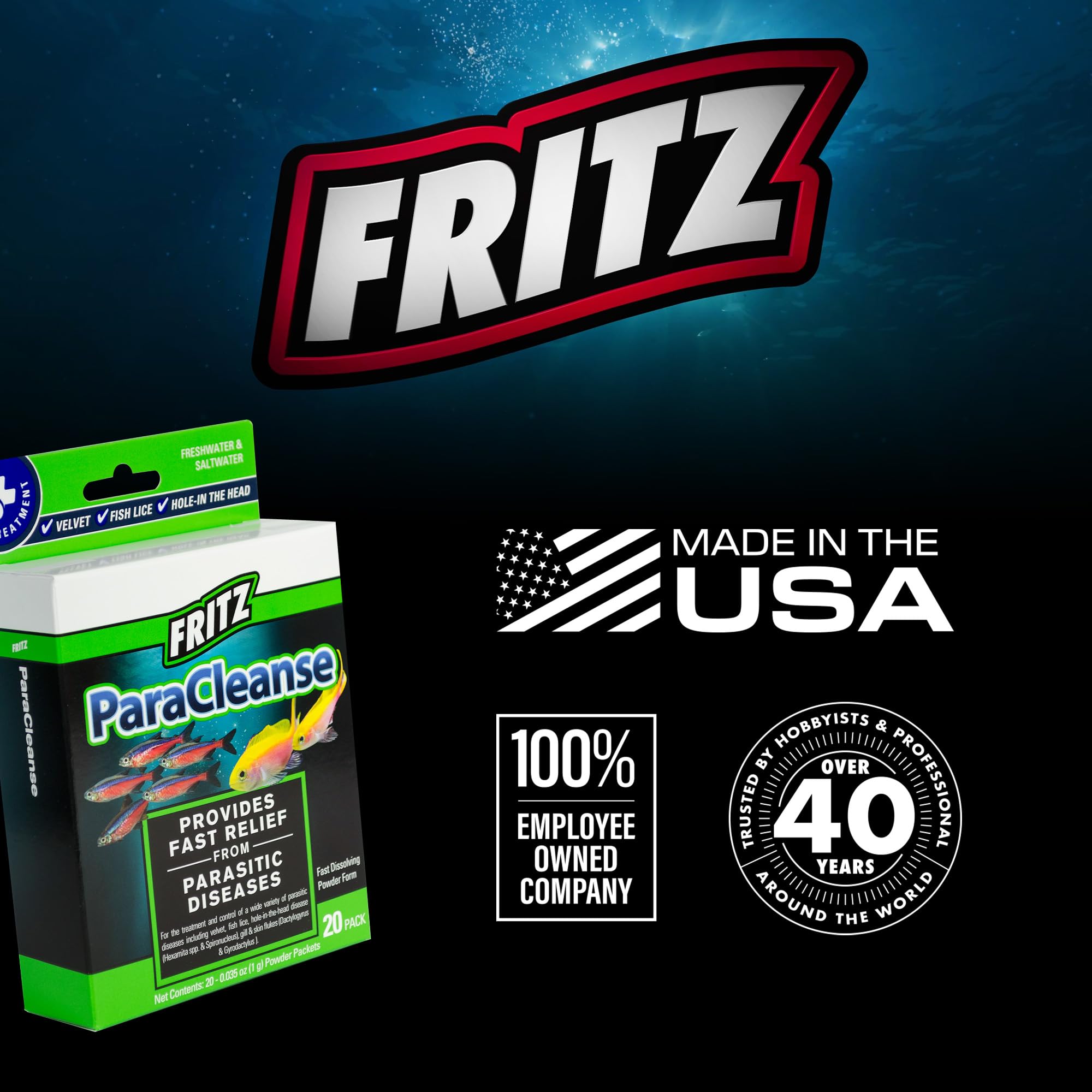 Broad-Spectrum Parasite Treatment: Fritz ParaCleanse is expertly formulated to treat a wide range of parasitic diseases in aquarium fish, including velvet (Oodinium), hole-in-the-head disease (Hexamita & Spironucleus), fish lice, and gill & skin flukes (Dactylogyrus & Gyrodactylus), ensuring a healthy environment for your fish