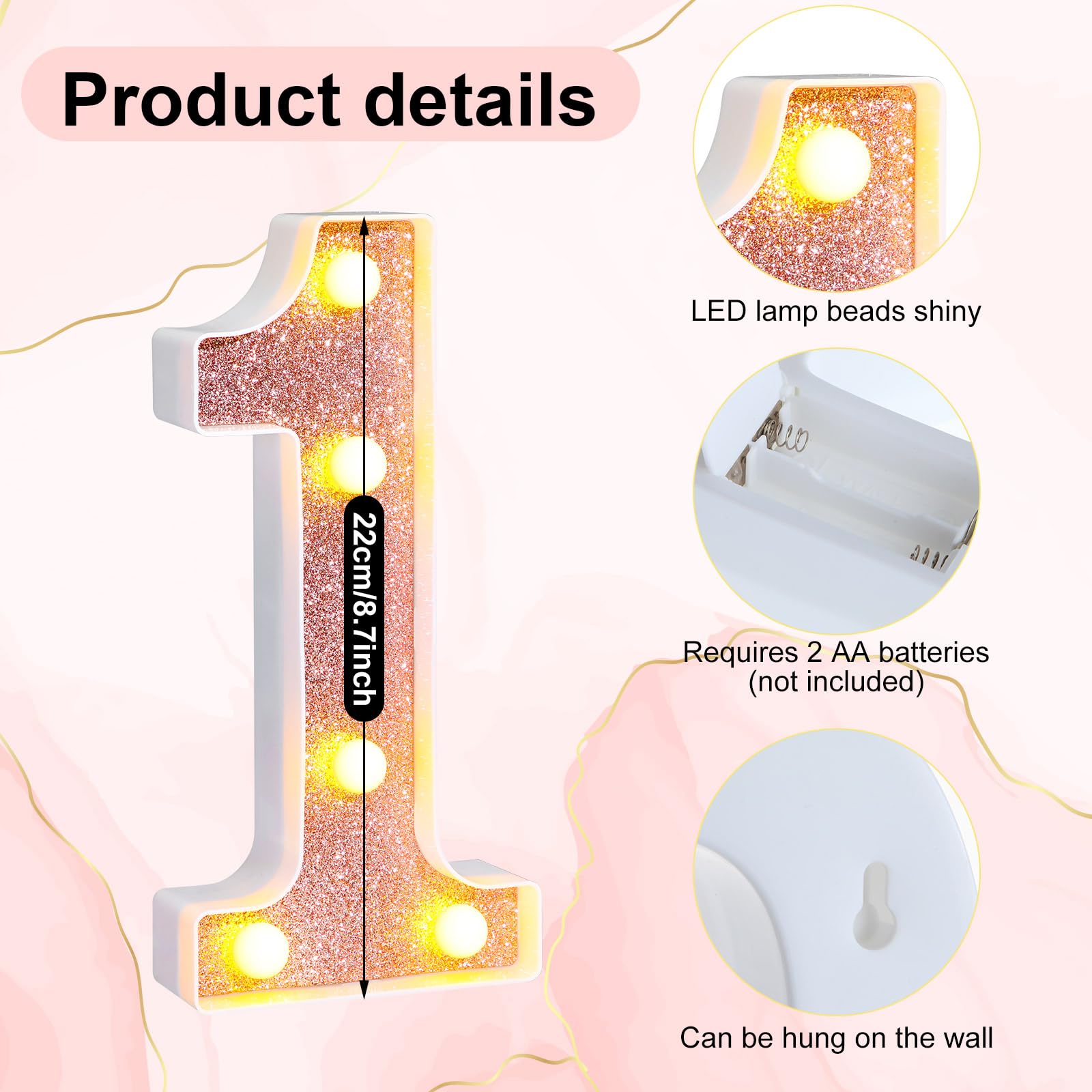 Birthday Party Supplies: you will receive 1 pieces of light up number, namely number [1]; Specific style and classic rose gold color can easily meet your party decoration needs, putting them on your table will definitely make your party eye catching and more attractive